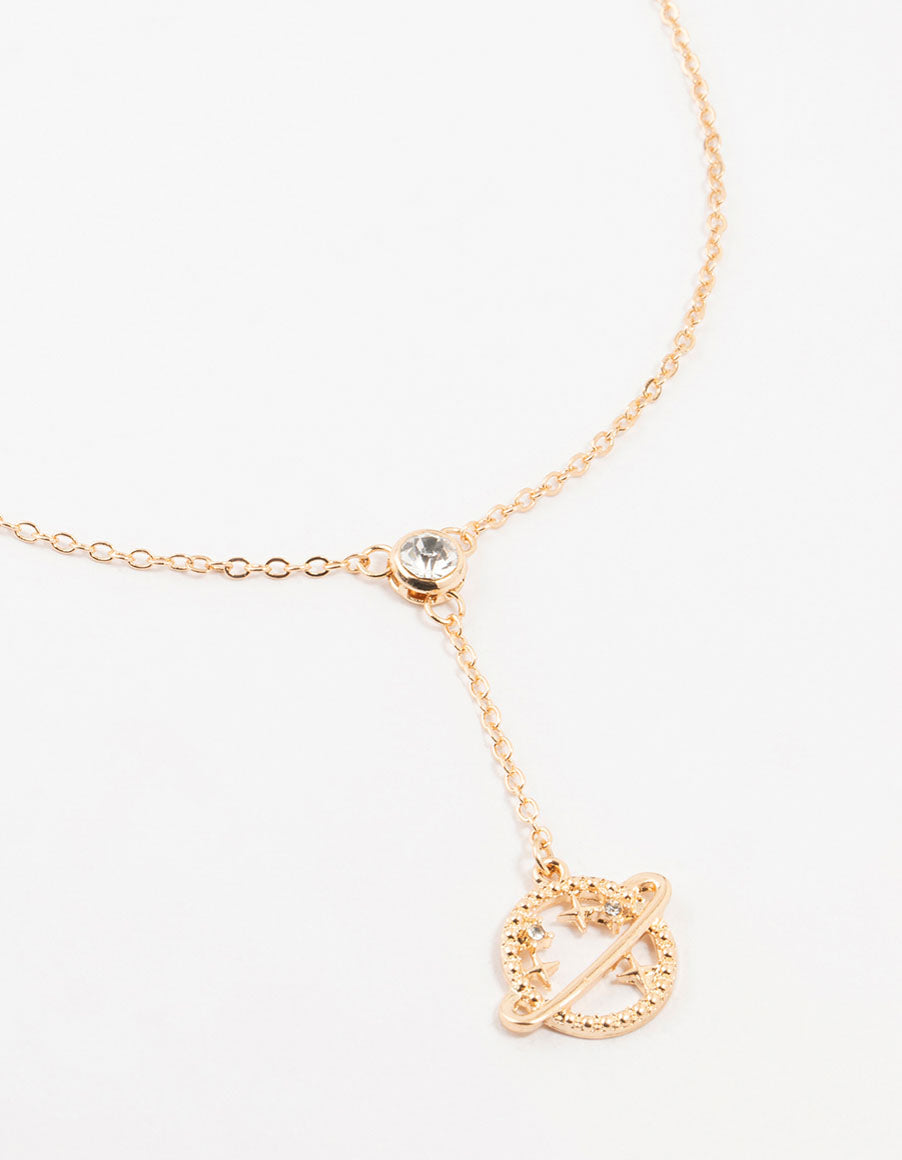 Gold Diamante Planet Y-Necklace