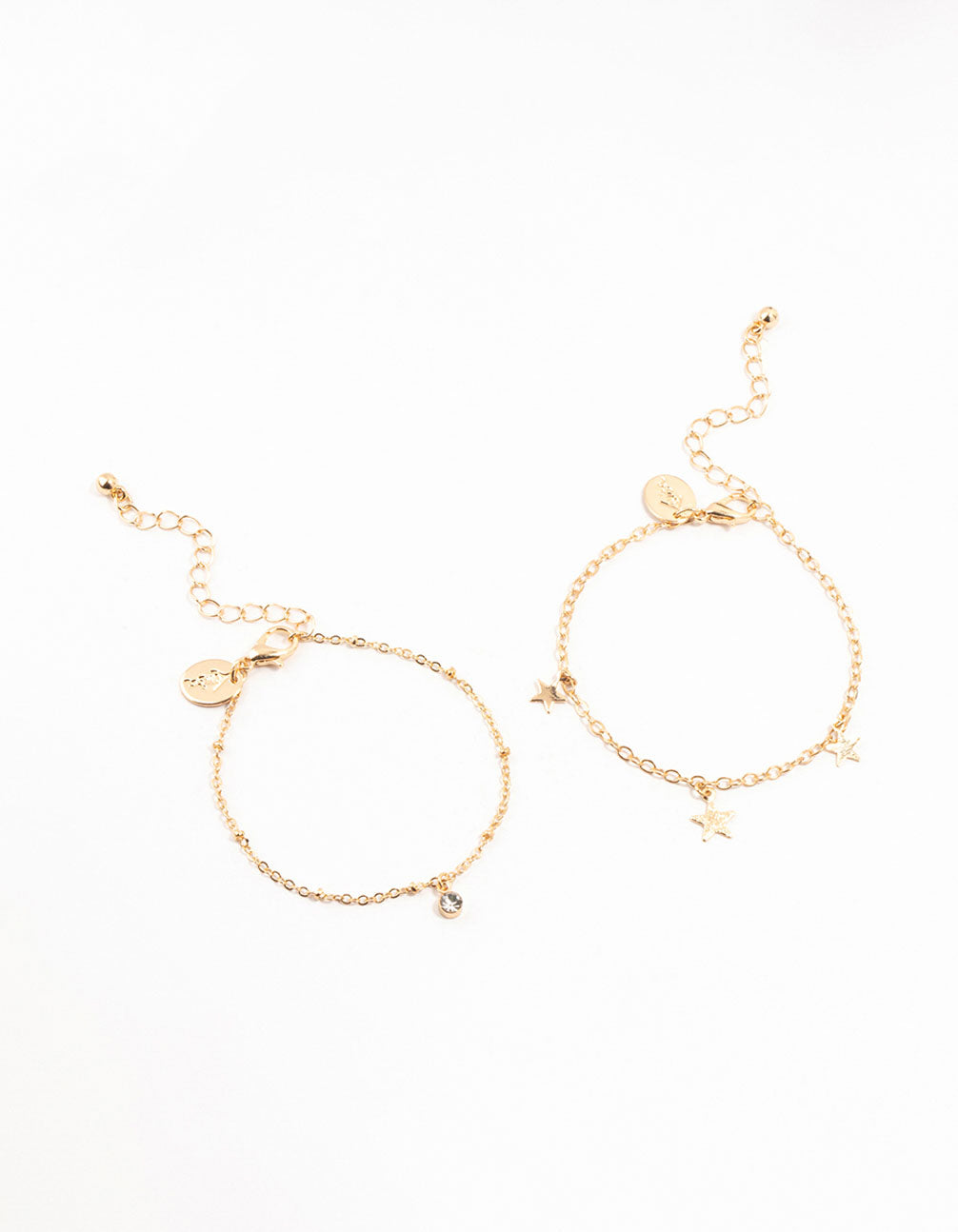 Gold Diamante Star Charm Bracelets 2-Pack Gold Diamante Star Charm Bracelets 2-Pack