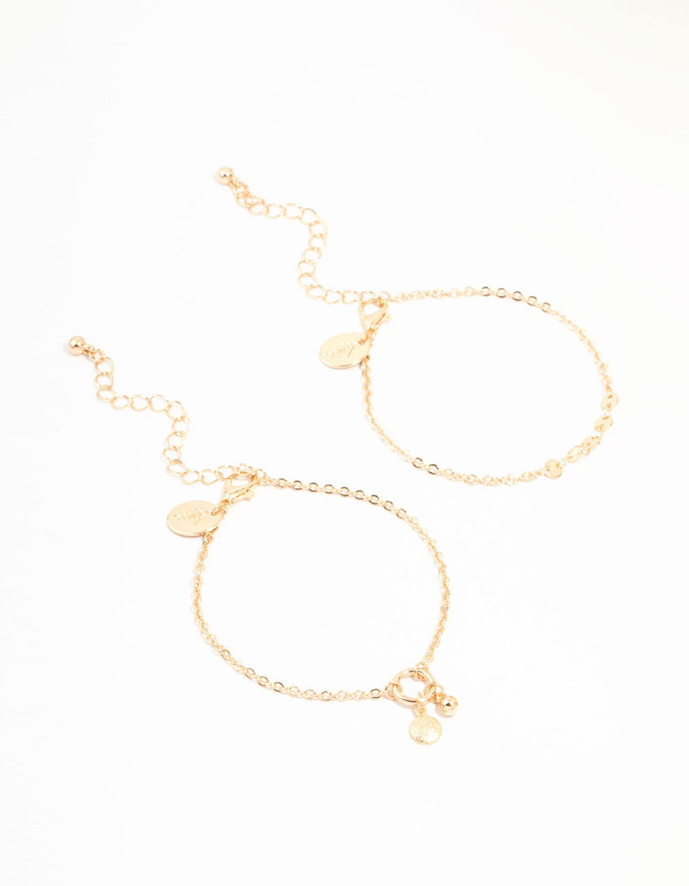 Gold Disc & Ball Toggle Charm Bracelets 2-Pack