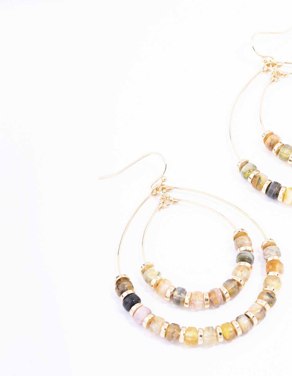 These elegant hoop earrings feature a double layer design, embellished with a selection of natural coloured beads.