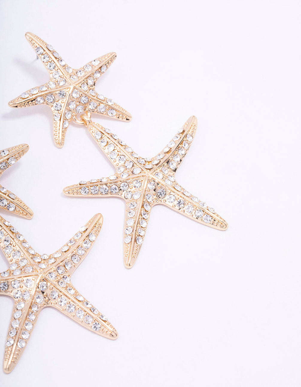 Gold Double Diamante Starfish Drop Earrings Gold Double Diamante Starfish Drop Earrings Gold Double Diamante Starfish Drop Earrings