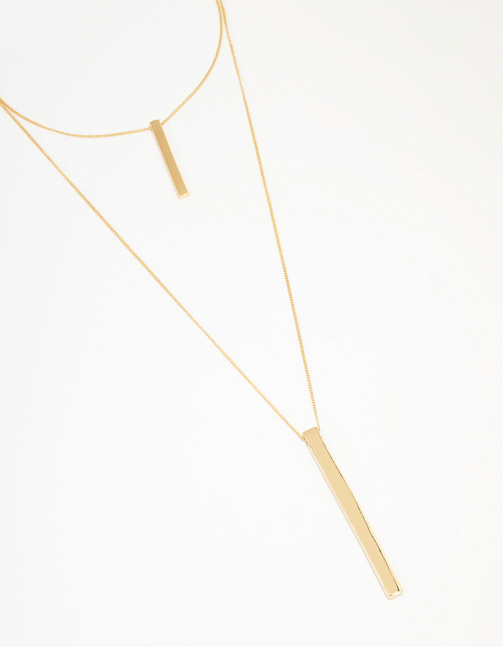 Gold Double Row Long Bar Necklace