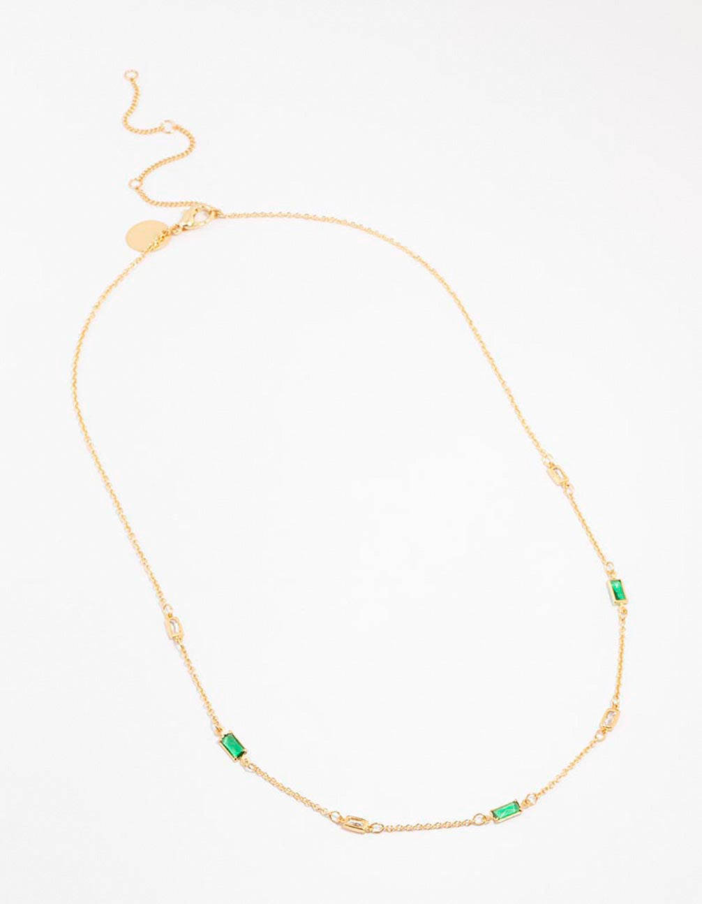 Gold Plated Emerald Baguette Station Necklace