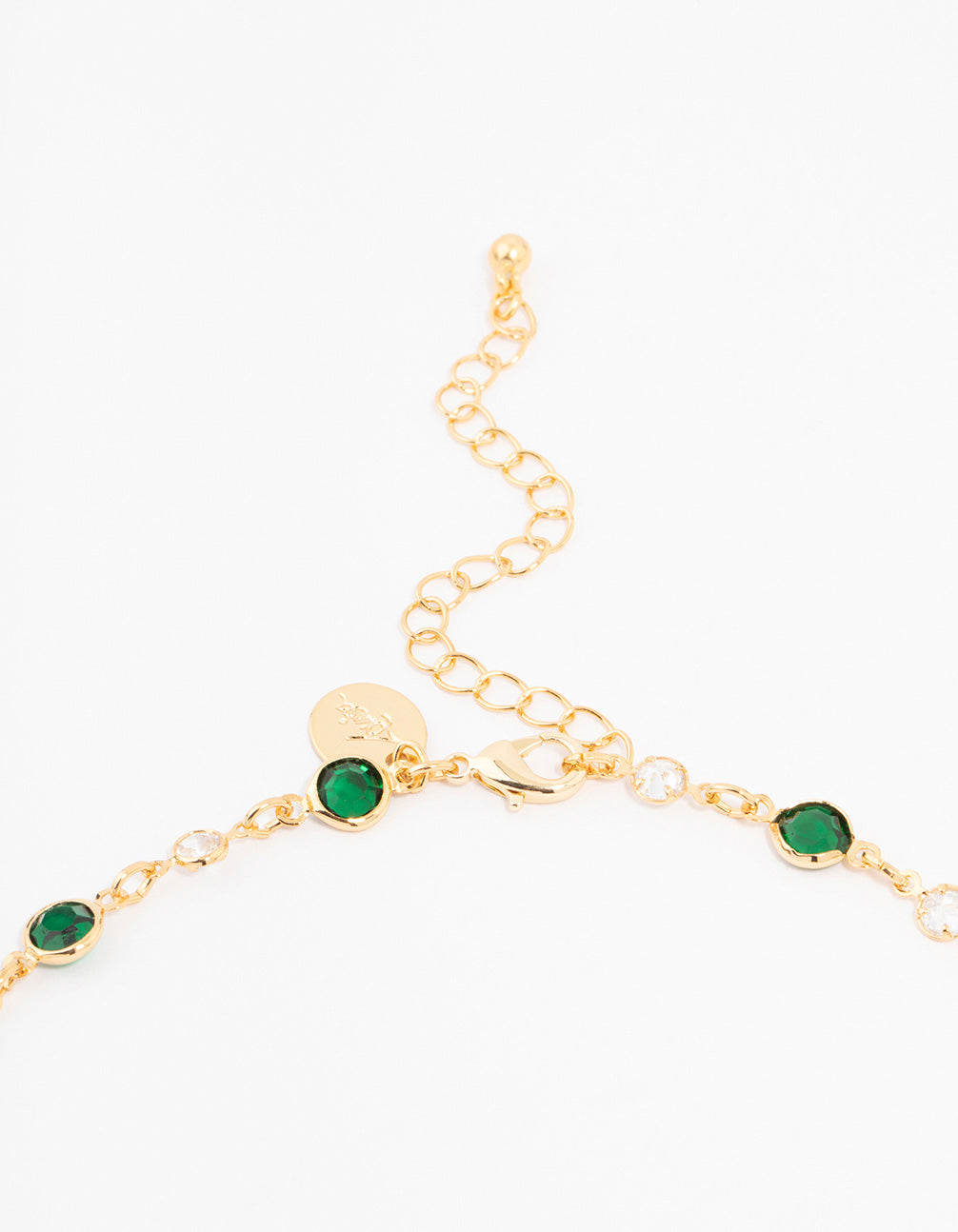 Experience timeless sophistication with this captivating Gold Plated Emerald Round Station Necklace, the perfect staple choice for everyday wear.
