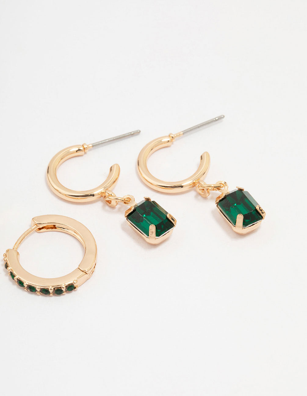 Gold Emerald Stud Earrings 3-Pack