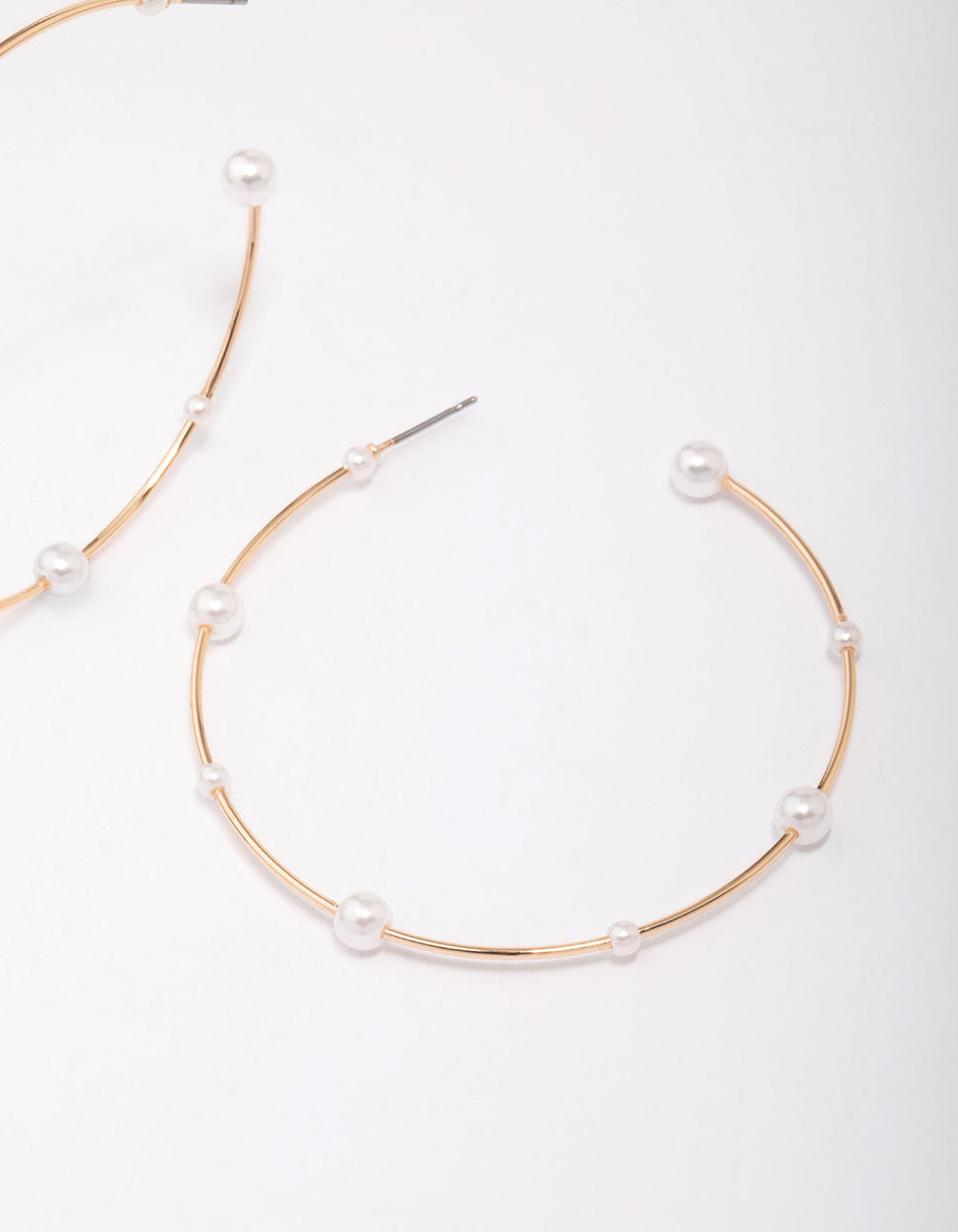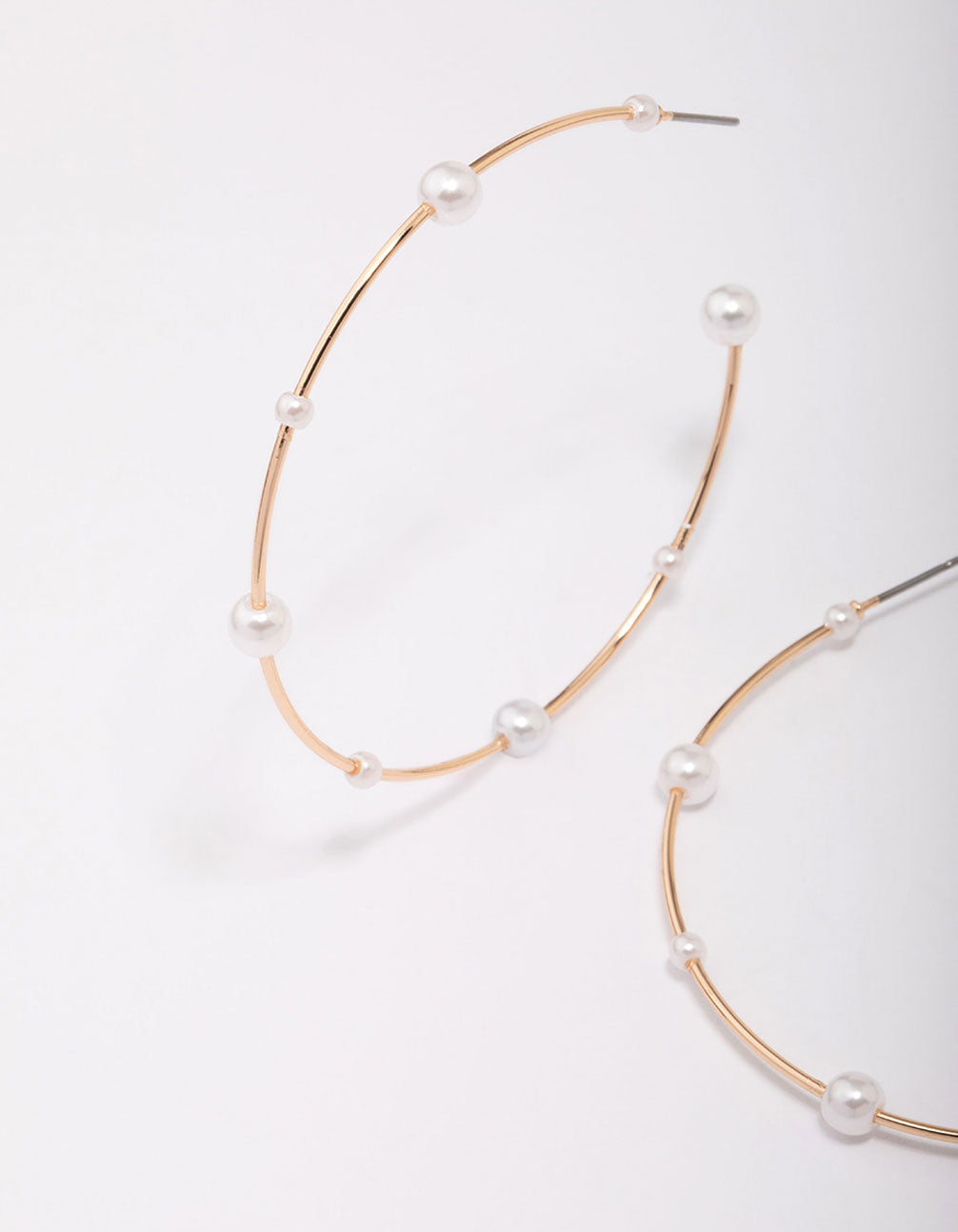 For a timeless addition to your stack, style these dainty hoop earrings. These large hoop earrings feature a fine profile, adorned with mini pearls stationed around the hoop.
