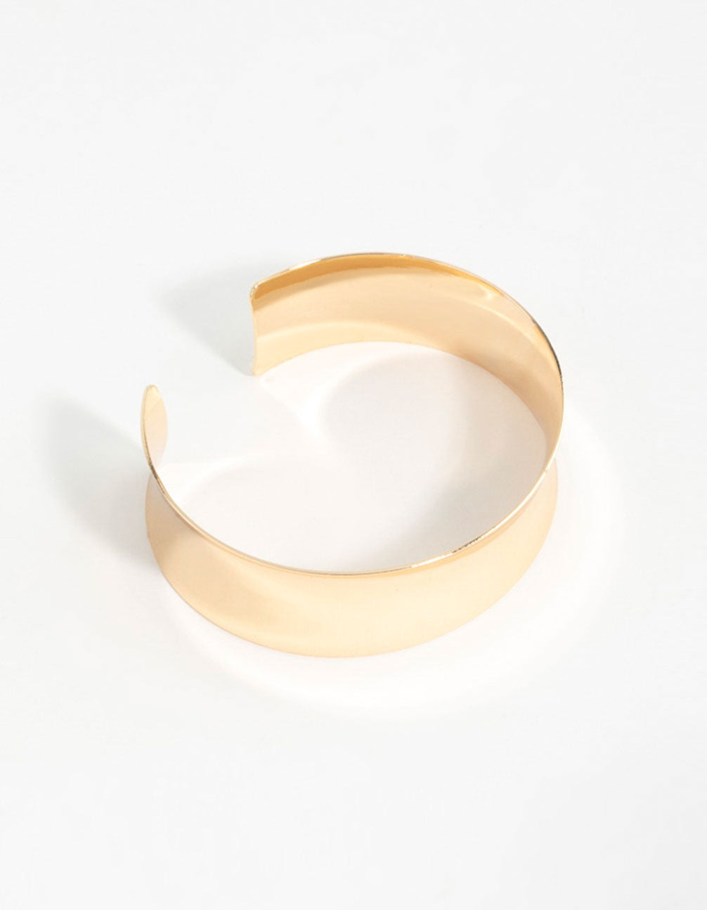 Make a bold statement with this gold-toned cuff. Its flat, wide design brings serious style to your wrist!