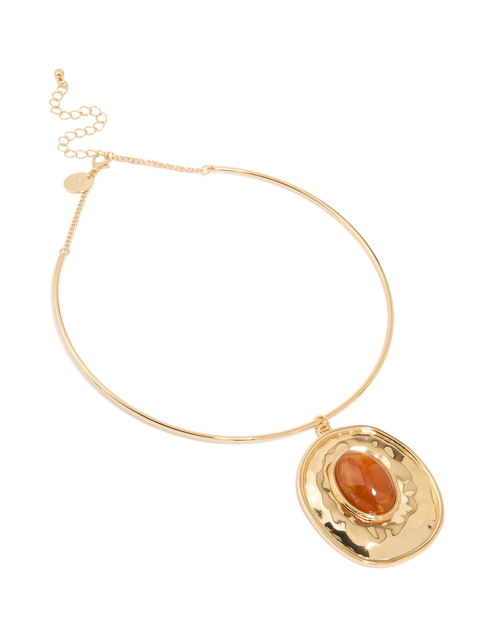 Add a touch of modern elegance to your look with this Gold Gem Molten Necklace. This stunning pendant necklace is designed with a sleek molten-inspired gold finish, giving it a fluid, organic style that's effortlessly chic. Perfect for dressing up your everyday outfits or adding a little shimmer to eveningwear, it's a versatile jewellery piece you'll reach for again and again. Pair it with a simple blouse for casual sophistication or layer it over a little black dress for a more glamorous vibe. Whether you're heading to brunch, a party, or just sprucing up your day, this necklace is your go-to for timeless, youthful style.