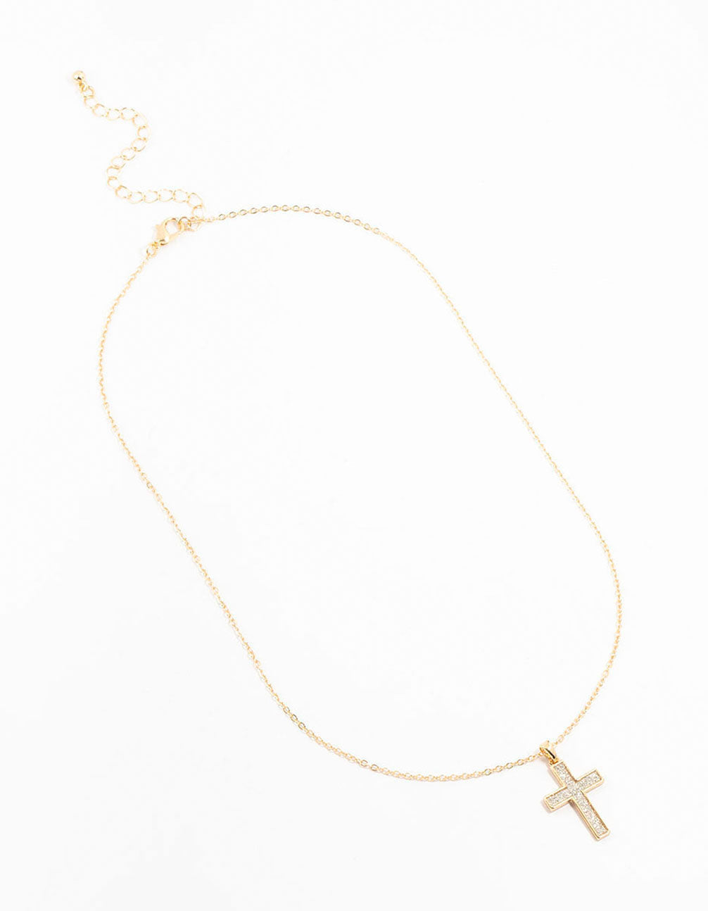 Level up your look with the Gold Glitter Cross Necklace! Featuring a gleaming gold-tone cross adorned with captivating glitter, this pendant makes a sophisticated statement that complements any style.