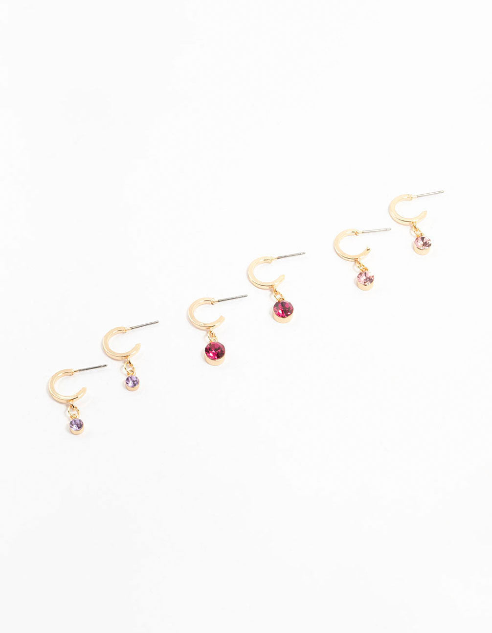 Elevate your everyday essentials with sparkle using this set of diamante drop huggie-style earrings. Featuring graduating sizes and colours including pastel purple, pastel pink, and hot pink, these earrings add pretty flair to your daily looks.