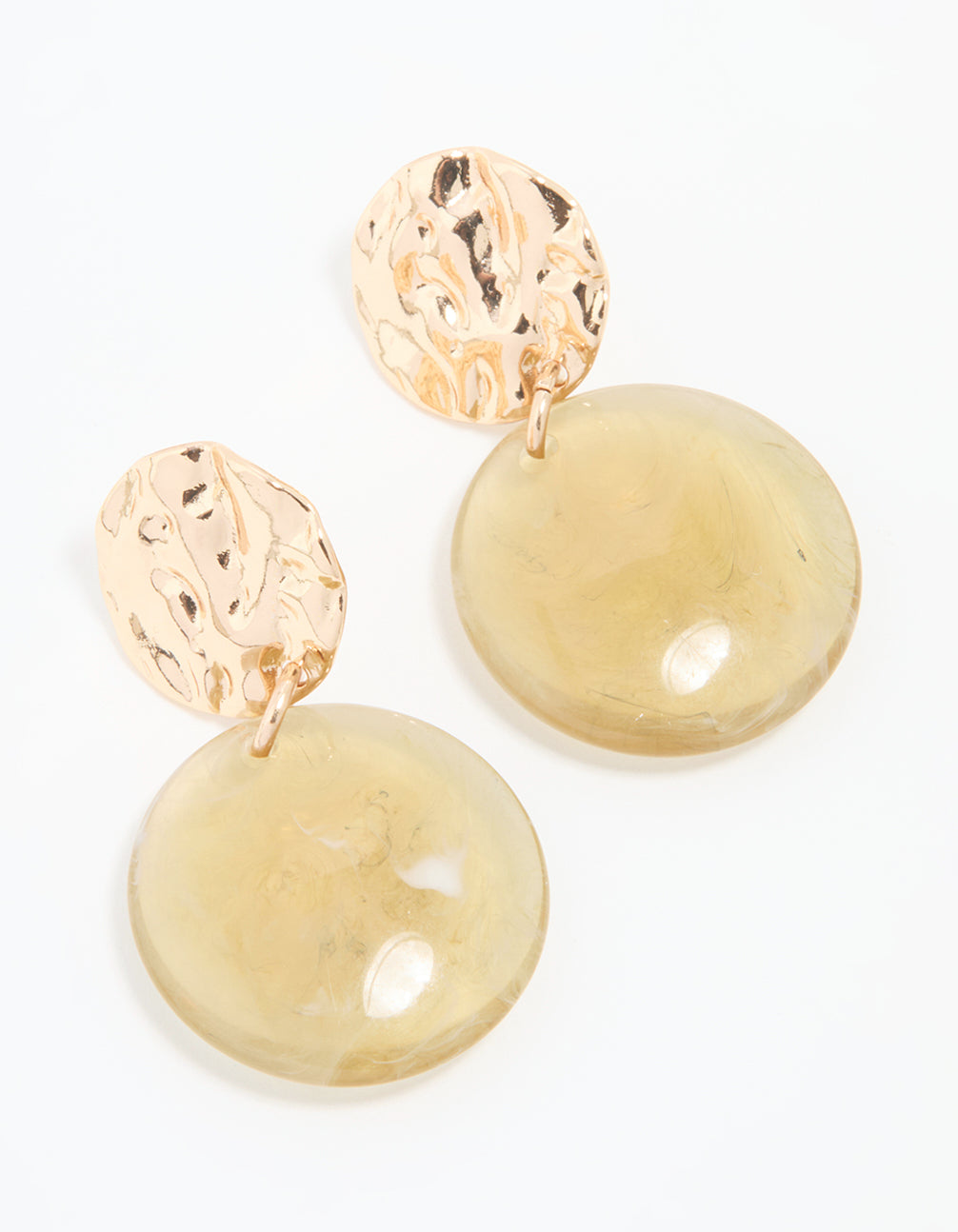 • Gold Green Acrylic Hammered Circle Drop Earrings - link has visual effect only