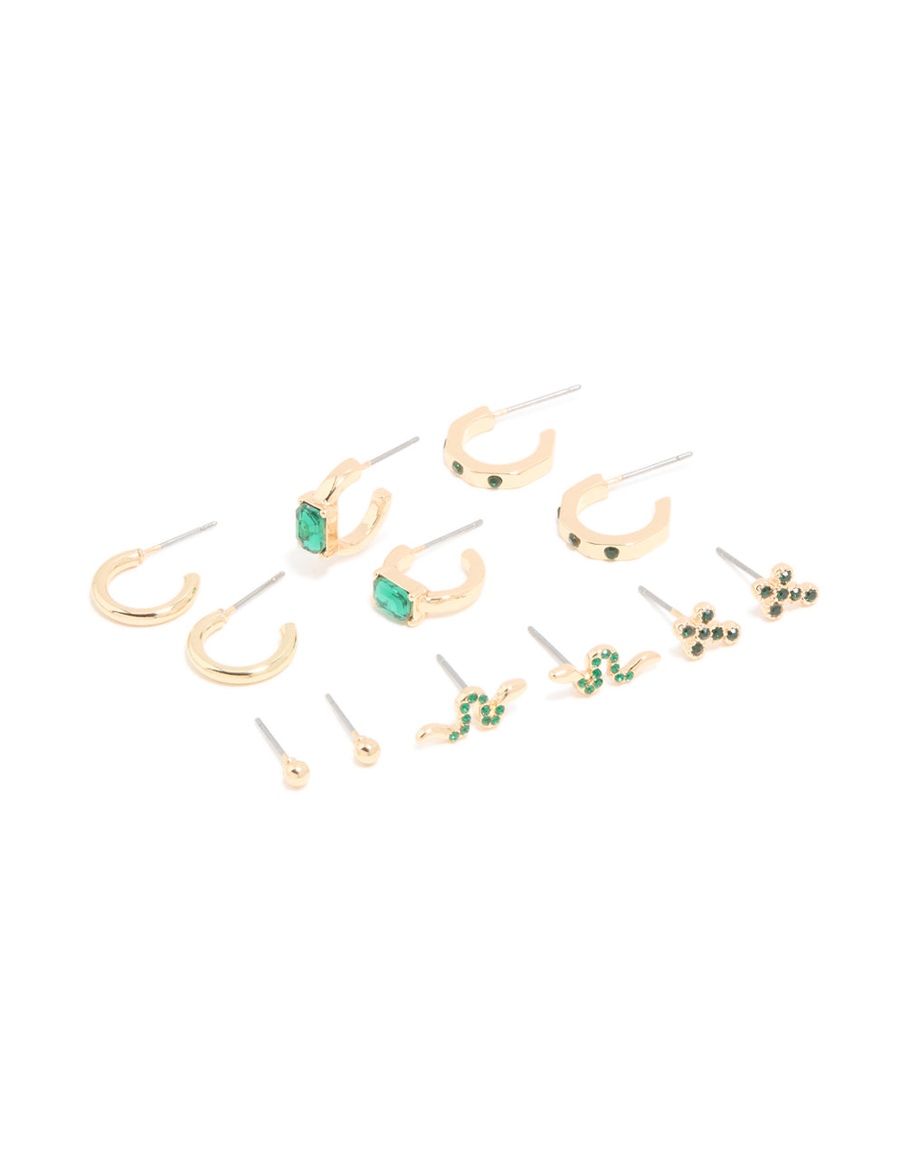 Gold Green Diamante Cross & Snake Earrings 6-Pack