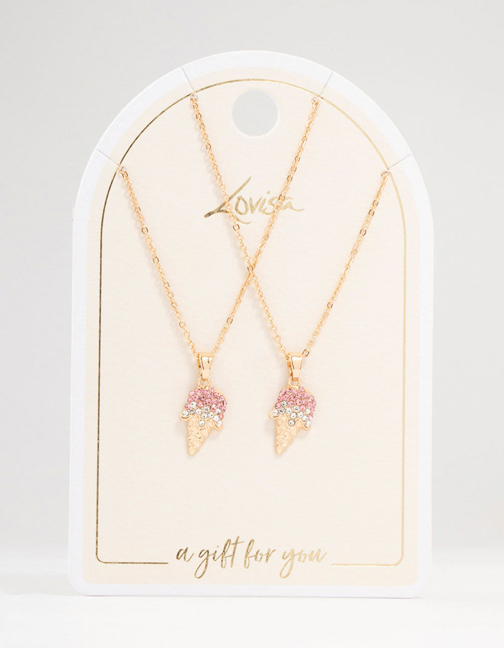 Add a scoop of sweetness to your style with these Gold Ice Cream necklaces! This playful duo brings a fun, chic twist to any outfit. Whether you rock them solo or stack them up, these necklaces will keep you looking sweet all day long.