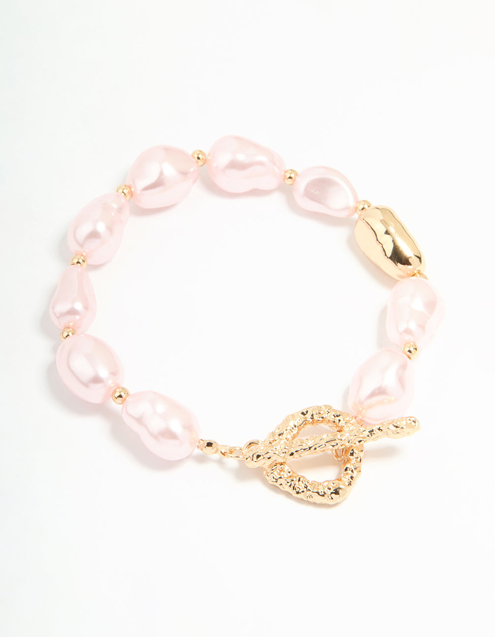Gold Irregular Pink Pearl Textured T & O Bracelet