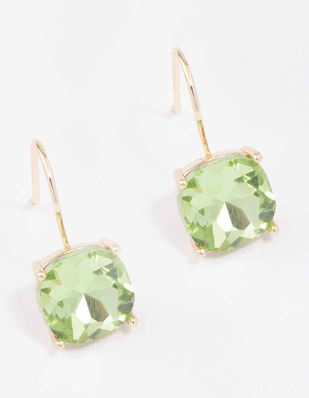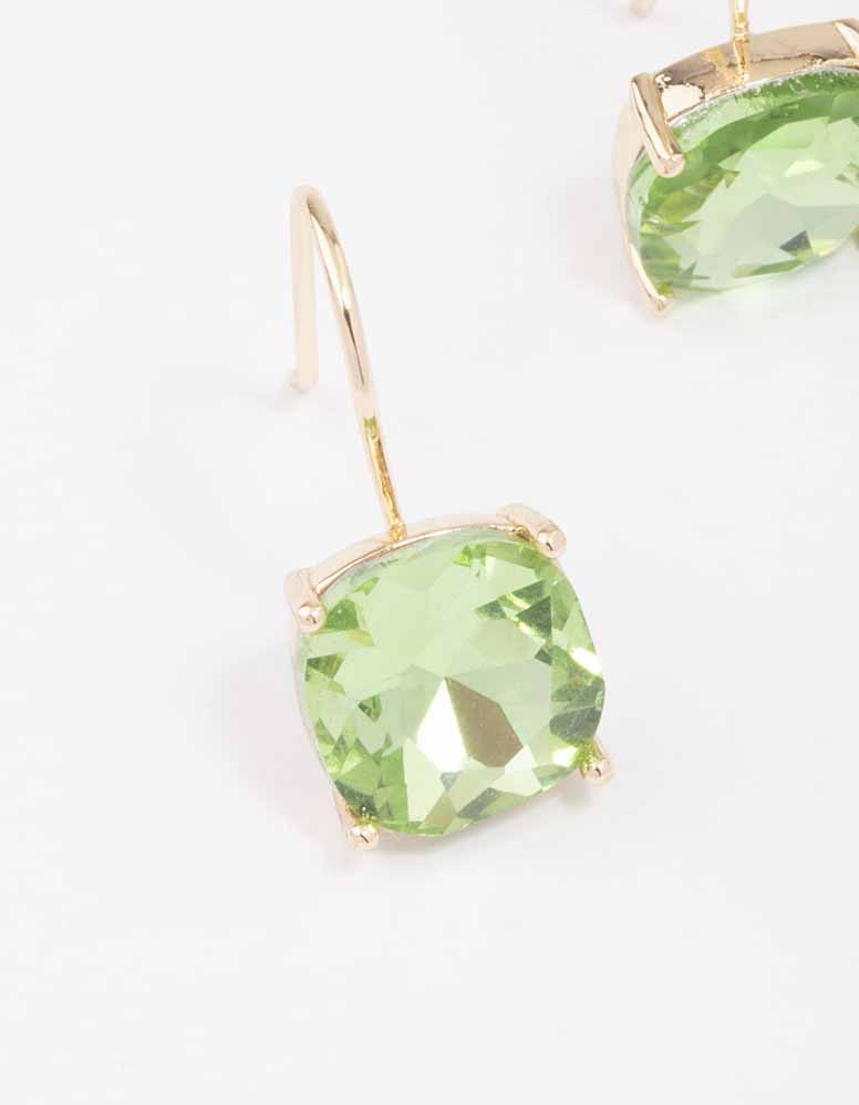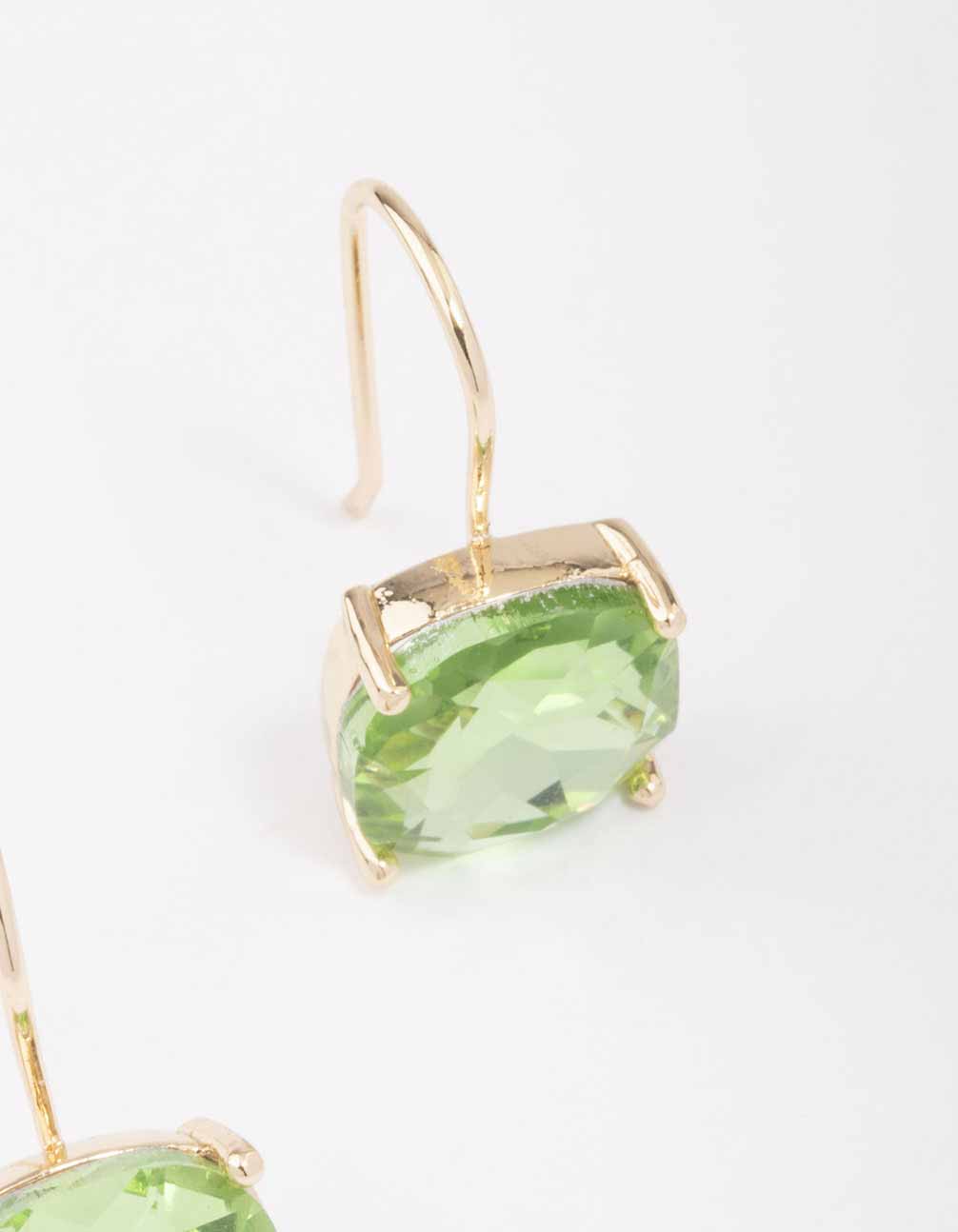 These delicate earrings feature a thin gold setting, adorned with a green, square-shaped gem for a refined finish to your stack.