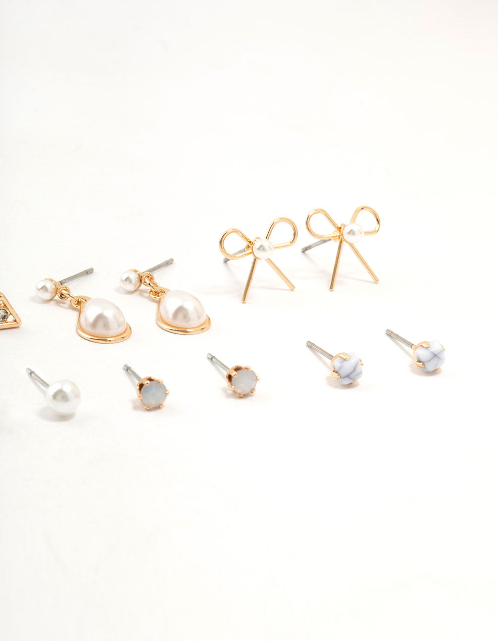 Gold Marbled Pearl & Bow Earrings 8-Pack