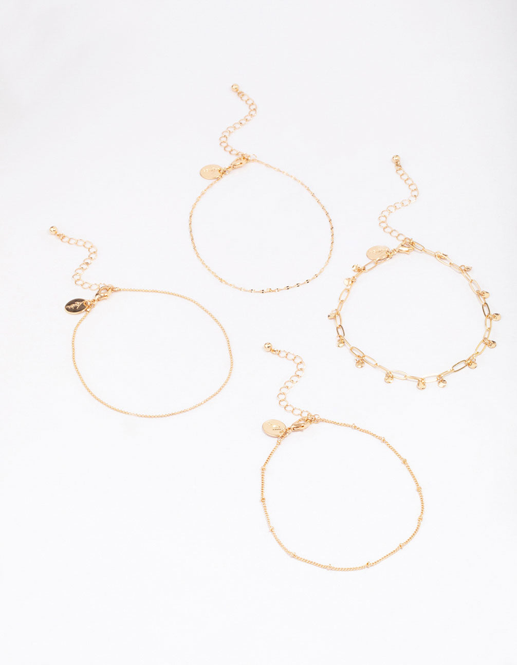 Gold Mixed Chain Anklet 4-Pack