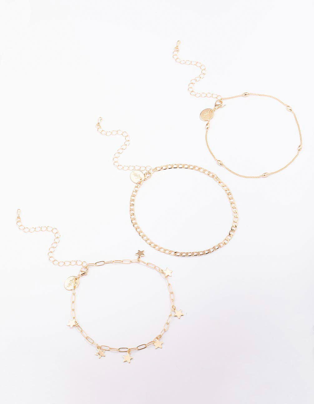 Gold Mixed Star Chain Anklet 3-Pack