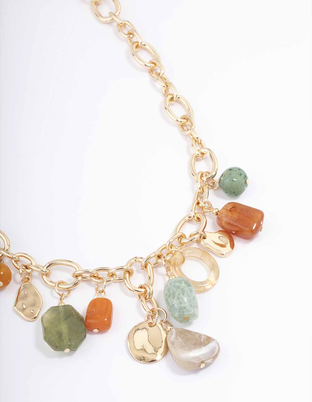 Gold Mixed Stone Charm Chain Necklace