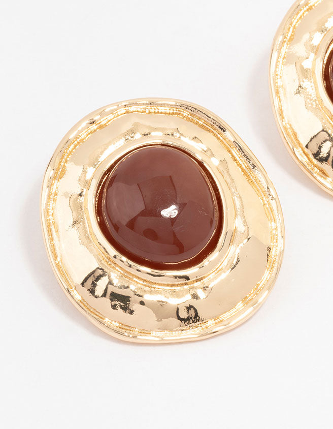 Embrace the statement stud trend with these pretty gold plated stud earrings, they feature a coloured circle disc design and molten design for a modern look.