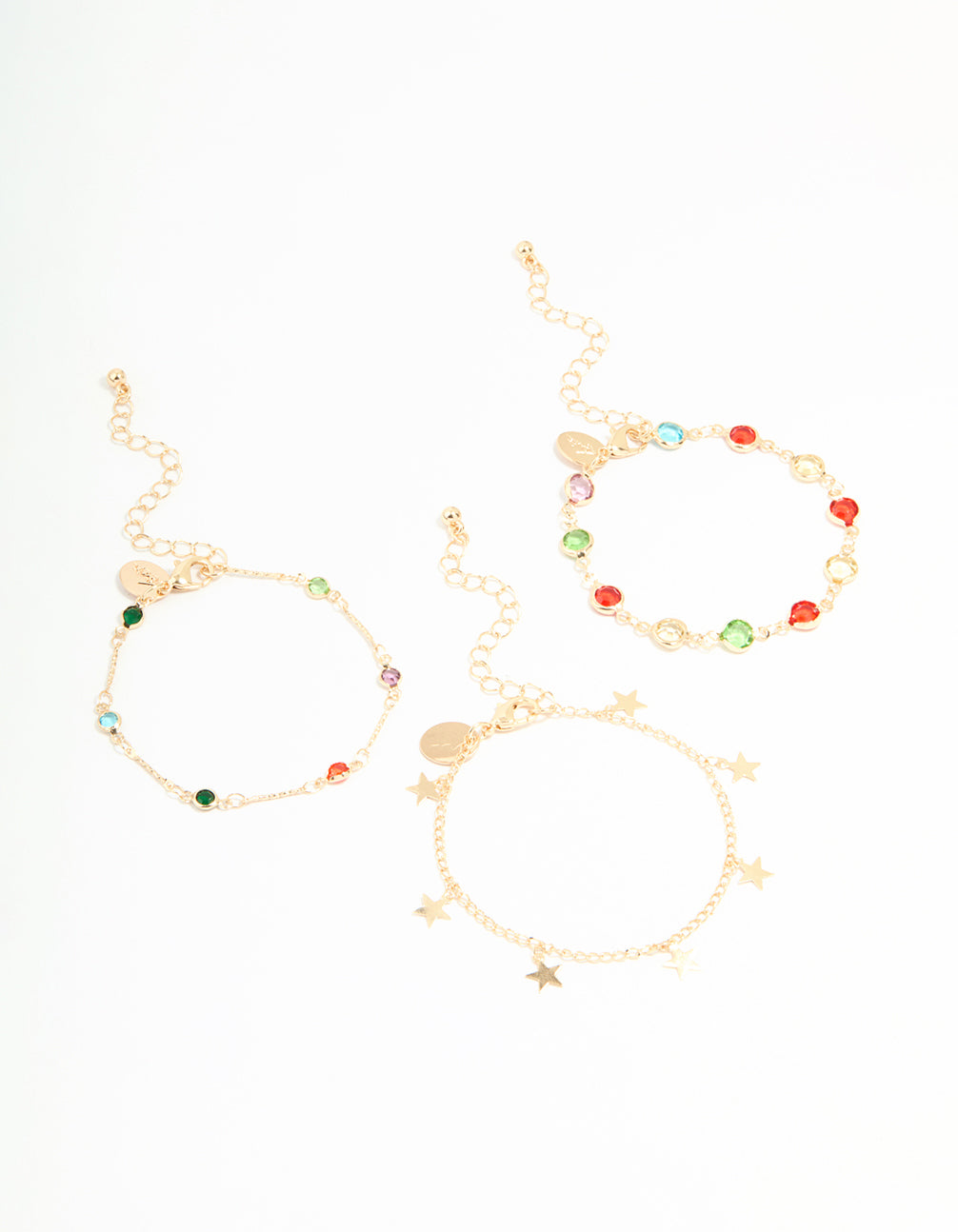 Gold Multicoloured Gem & Star Bracelets 3-Pack