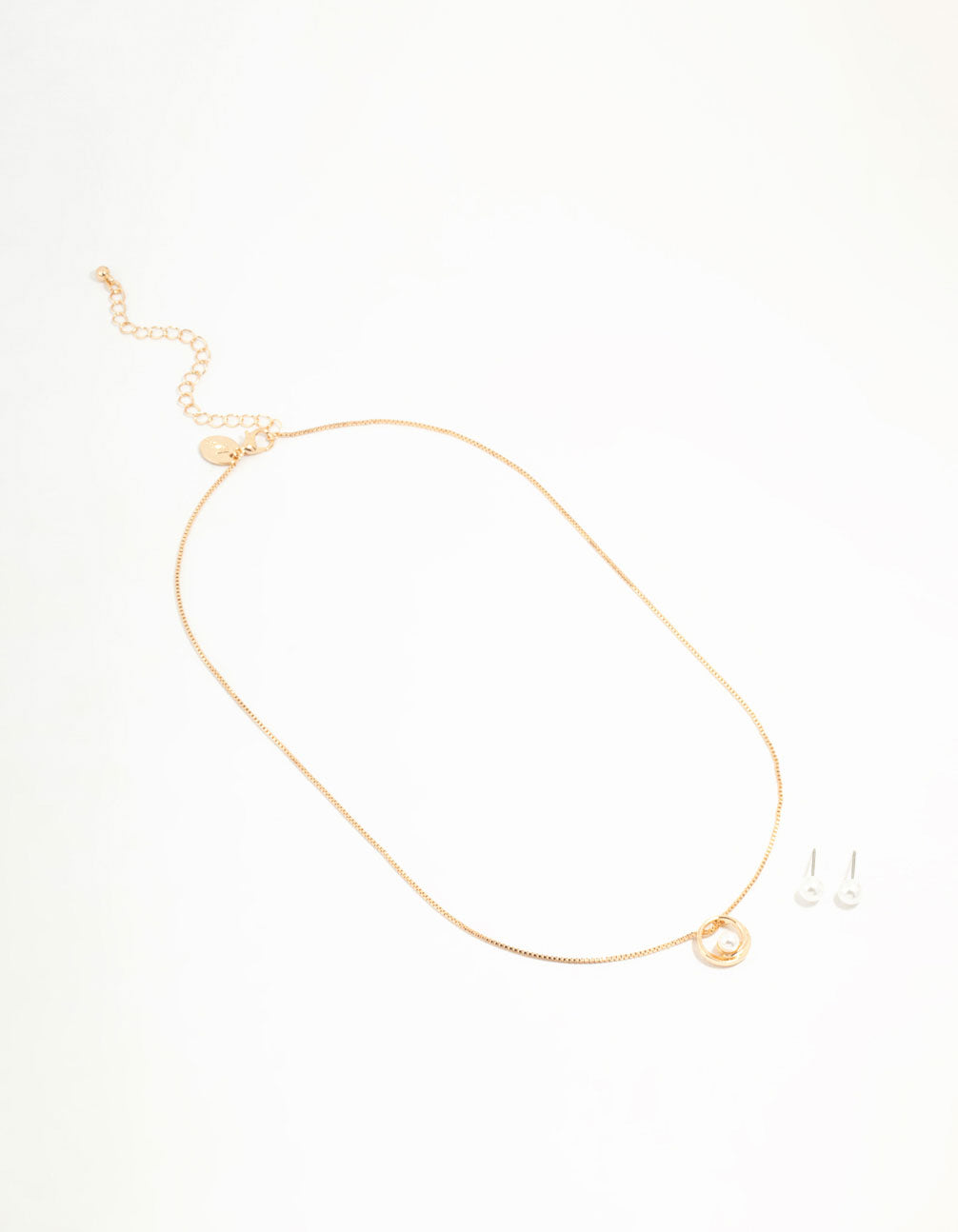 Gold Open Circle Necklace & Pearl Stud Earrings