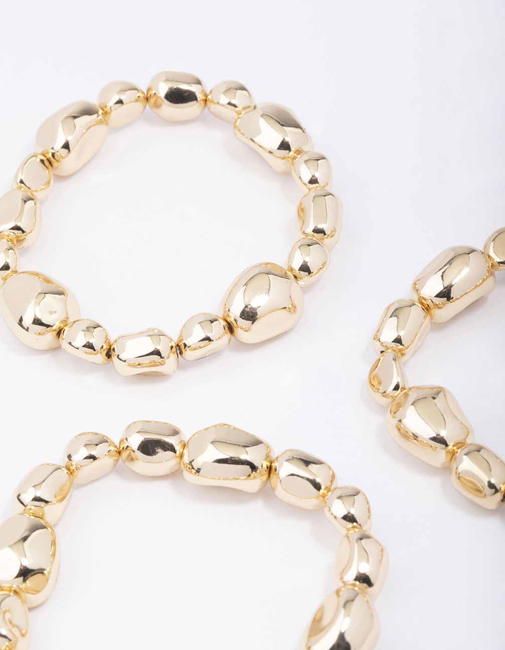 Gold Organic Oval Beaded Stretch Bracelet 3-Pack