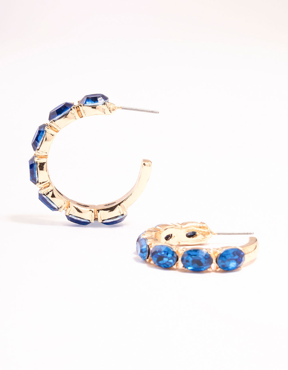 Add a pop of colour to your outfit with these gold-toned hoop earrings featuring pretty blue diamante crystal detailing, adding a calm yet fun touch to your look.