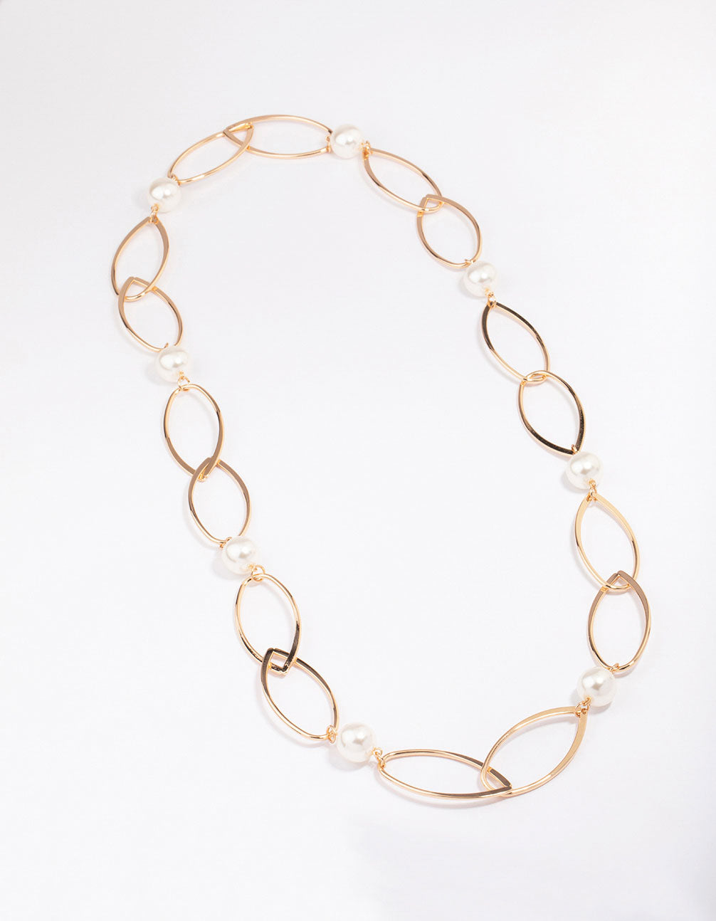 Gold Oval Pearl Link Chain Necklace