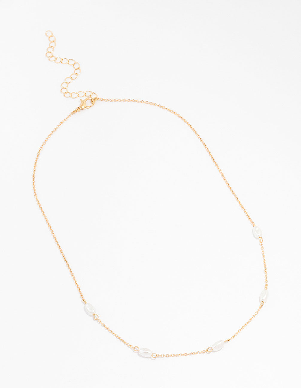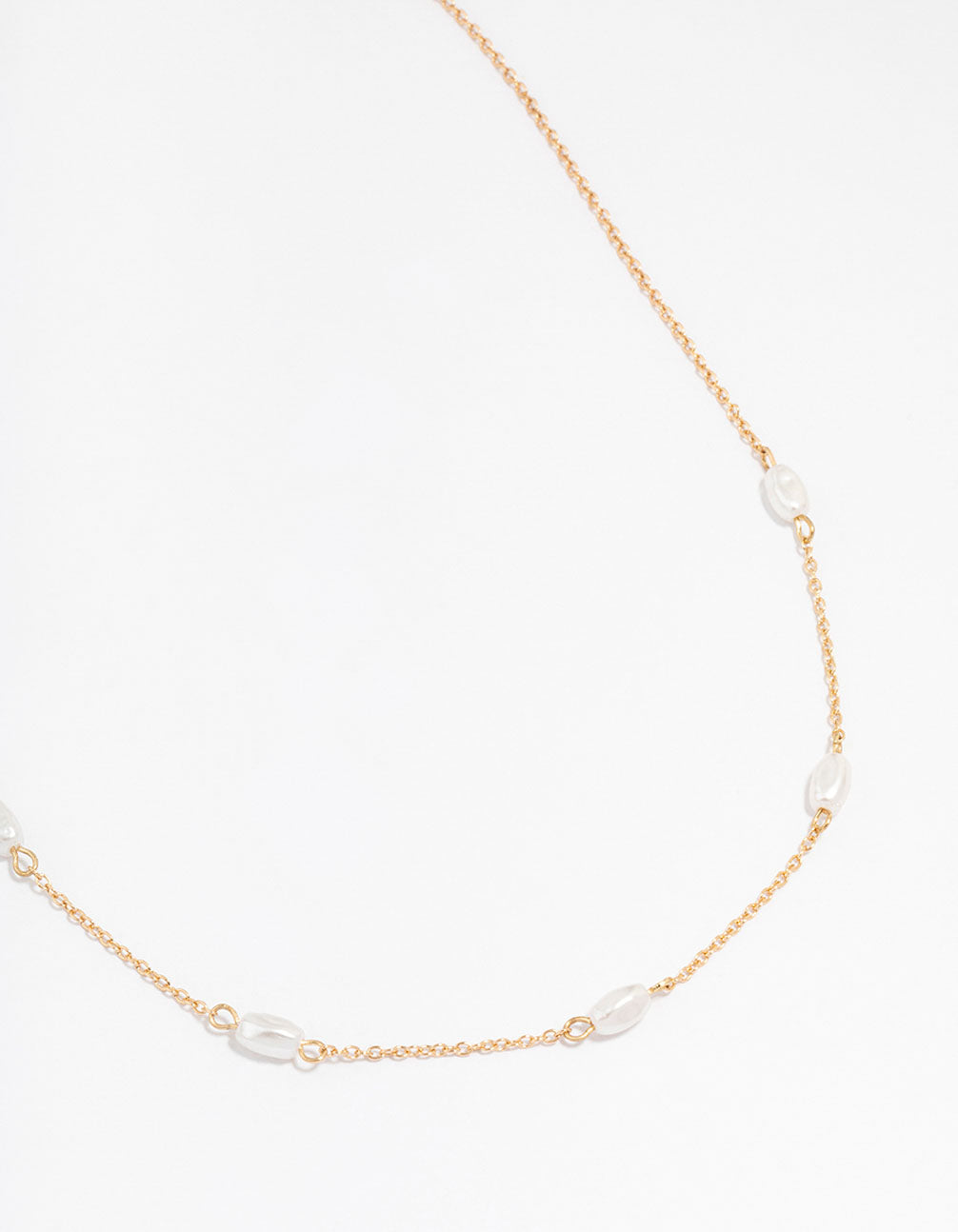 Channel effortless glamour with this super chic Gold Pearl Station Necklace. The stunning pearl accents add a beautiful touch of elegance to any outfit.