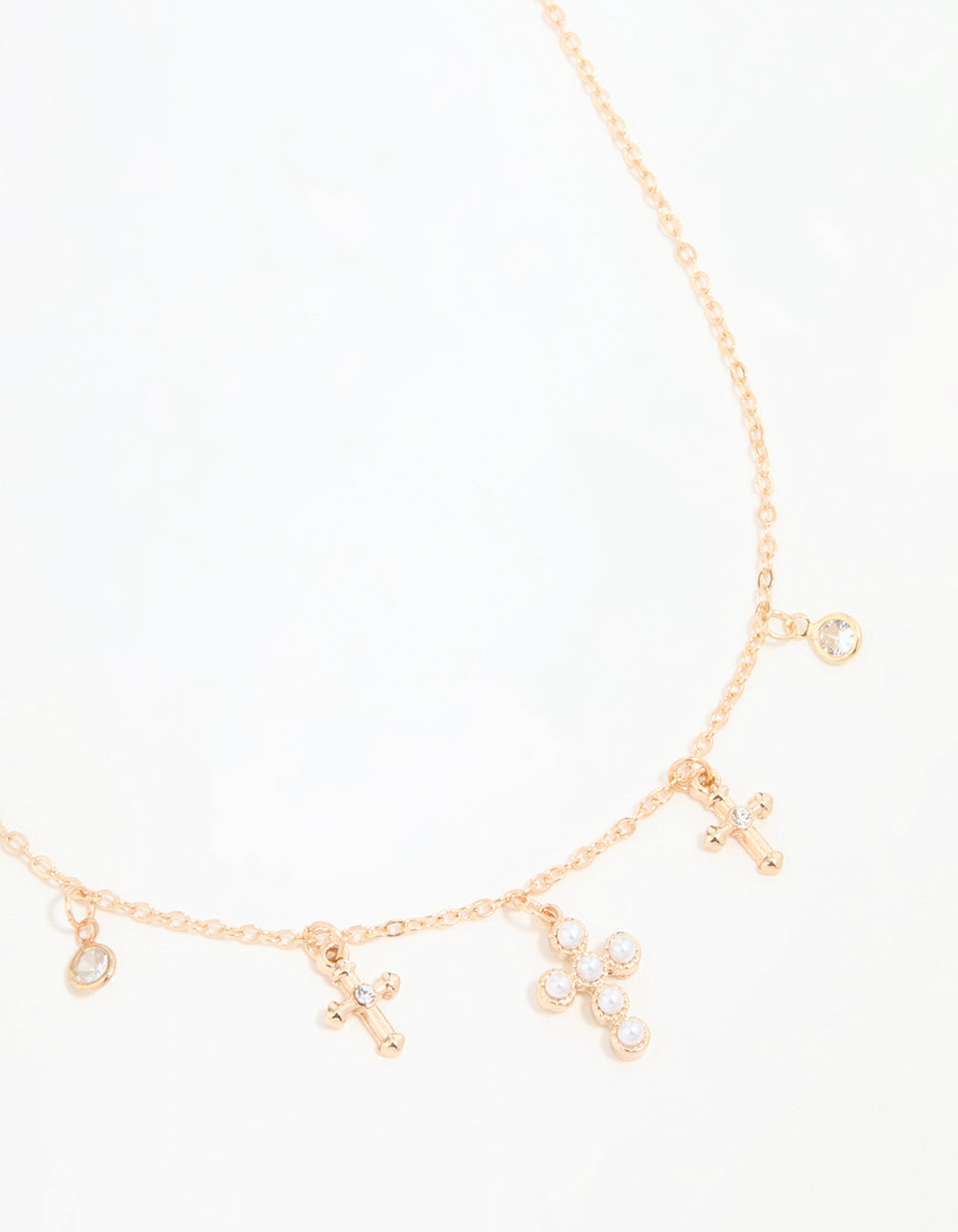 Gold Pearl Diamante Cross Charm Necklace