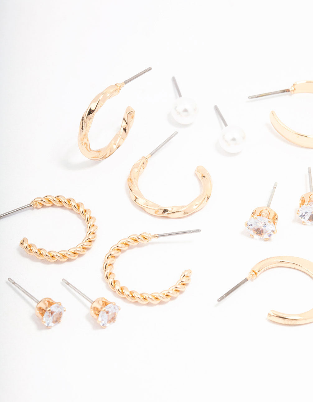 Gold Pearl Diamante Mixed Hoop & Stud Earring 8-Pack