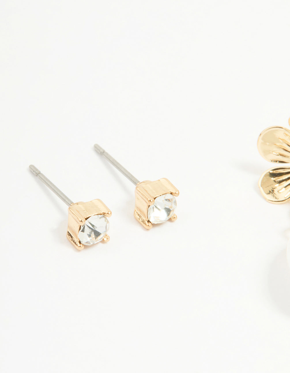 Gold Pearl Flower & Diamante Stud Earrings 2-Pack