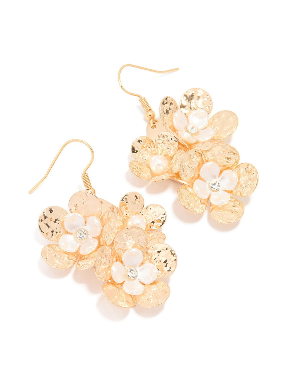 Add a touch of elegance to your look with these Gold Pearl Flower Drop Earrings. These stunning drop earrings showcase a delicate floral design paired with lustrous pearls, all set in gold-plated metal for a premium finish. Ideal for weddings, parties, or a chic dinner date, they complement everything from flowing evening gowns to tailored jumpsuits. Whether you're dressing up for a formal event or adding a sophisticated twist to a casual outfit, these earrings are your go-to accessory.