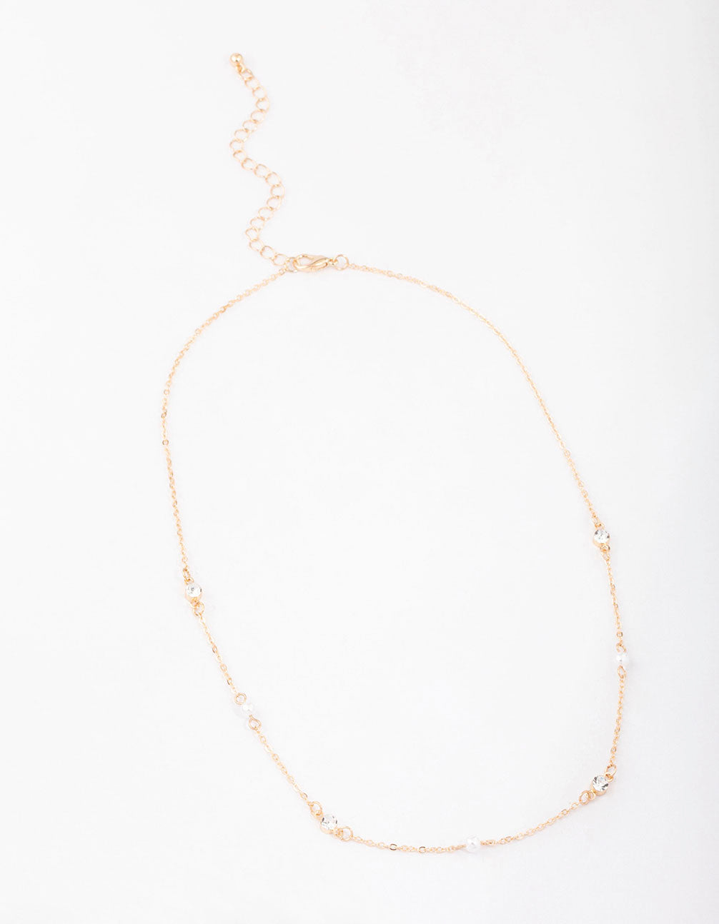 Gold Pearl & Round Diamante Necklace