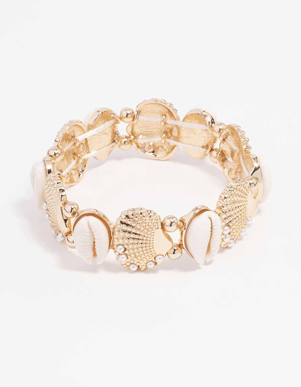 Gold Genuine Shell Pearl Stretch Bracelet Gold Genuine Shell Pearl Stretch Bracelet Gold Genuine Shell Pearl Stretch Bracelet