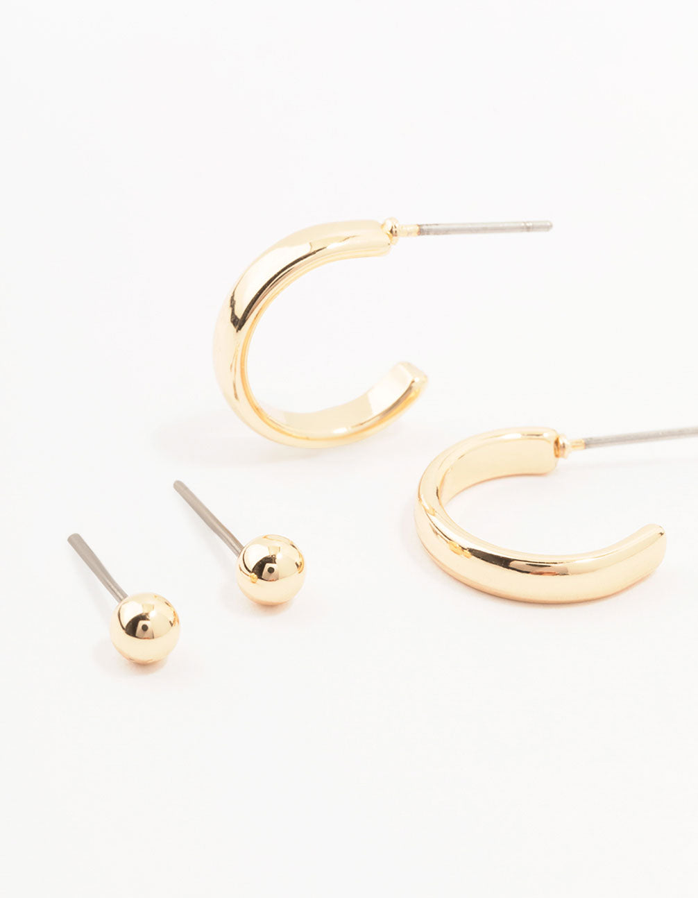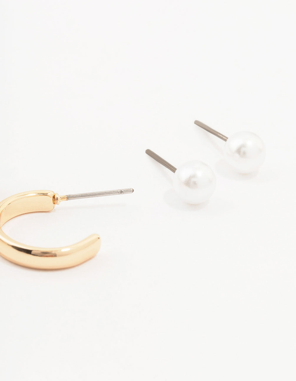 Gold Pearl Stud And Hoop Earrings 3-Pack