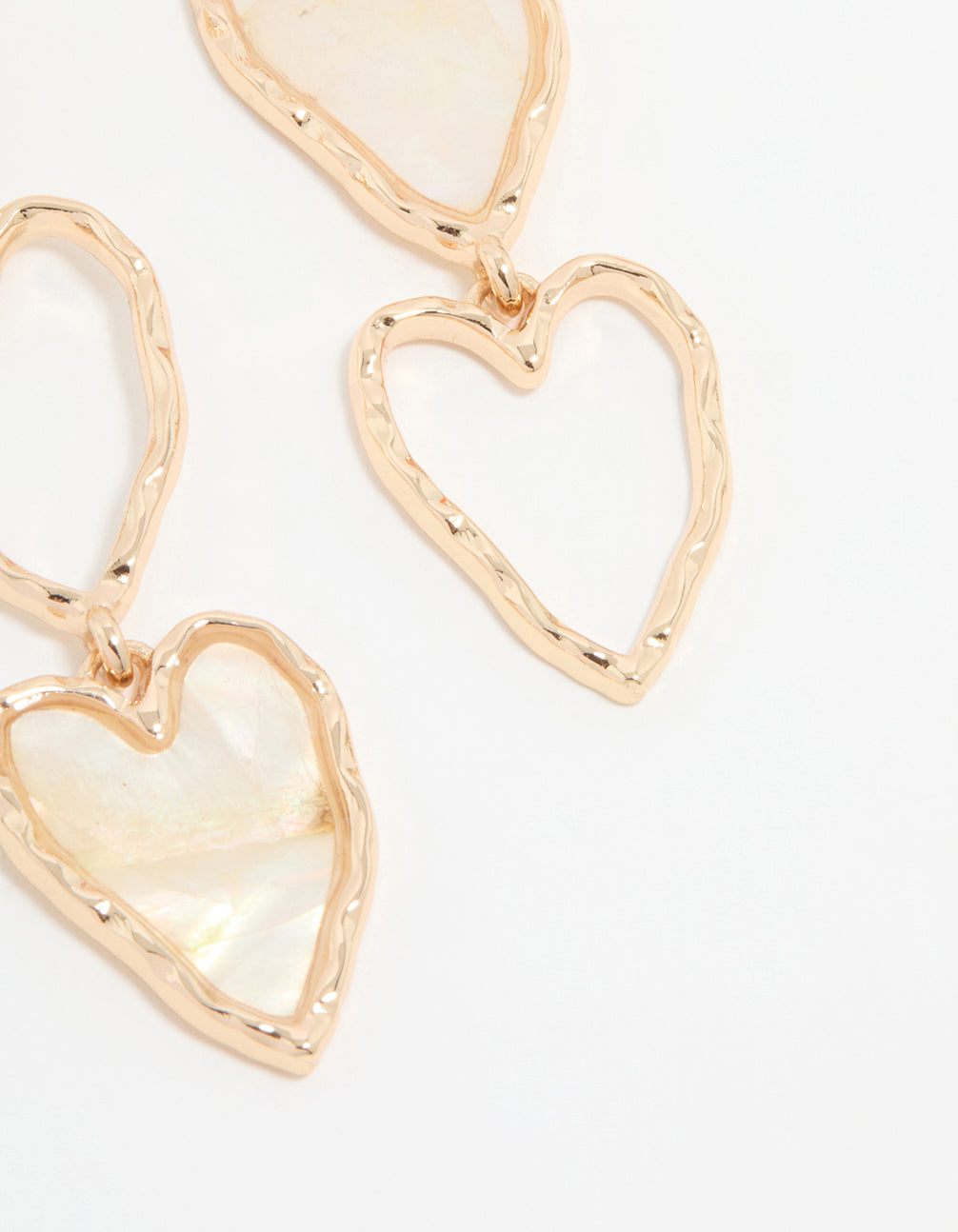 Add a touch of charm to any outfit with these Gold Genuine Shell Heart Layered Drop Earrings. Featuring three tiers of delicate, heart-shaped accents with a smooth genuine shell finish, these gold-toned drop earrings are perfect for creating a romantic, layered look. Whether you're dressing up for a date night or adding flair to your weekend brunch outfit, these earrings bring effortless elegance. Pair them with flowy dresses for a soft, feminine vibe or style with a sleek blazer for a chic edge. Ideal for those who love statement jewellery that's playful yet polished, these earrings are your go-to for turning heads wherever you go!