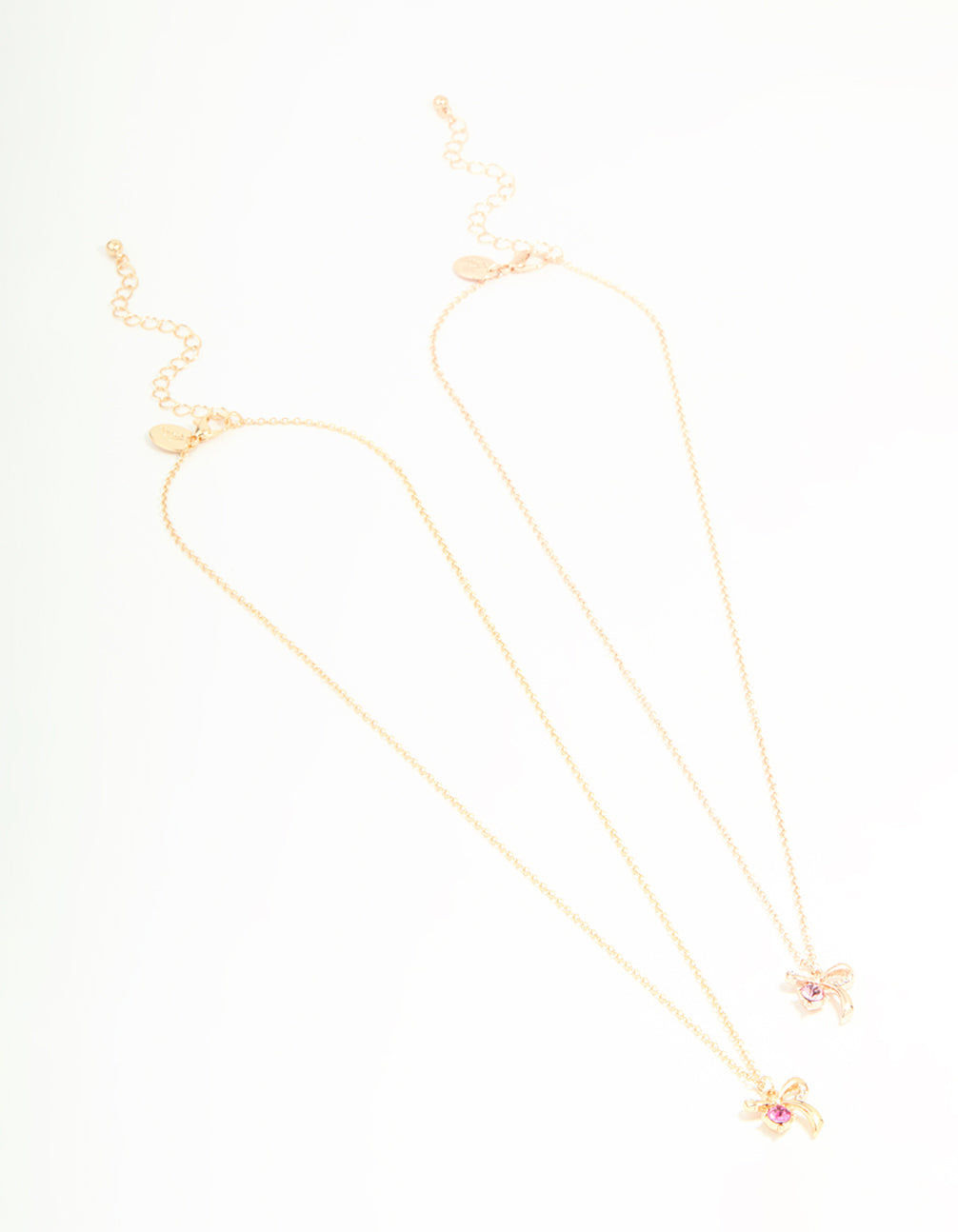Gold Pink Diamante & Bow Necklaces 2-Pack