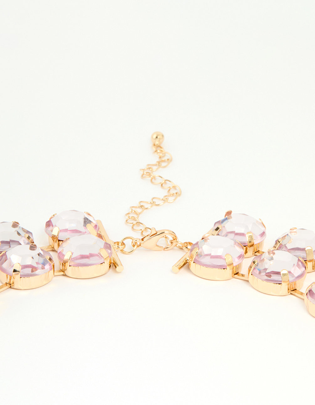 Turn up the glamour with this Gold Pink Diamante Statement Necklace. This limited-edition jewellery is crafted in a gold-tone finish and adorned with vibrant diamantes, making it the ultimate showstopper. Its bold design and sparkling details are perfect for event wear, whether you're attending a wedding, gala, or channelling Met Gala-inspired vibes. The statement necklace features a striking shape that sits beautifully on the neckline, making it a flawless match for plunging necklines or chic evening gowns. Pair it with neutral tones to let the pink crystals shine or layer it over a sleek blazer for a modern twist. Perfect for anyone looking to elevate their jewellery collection with a standout piece, this necklace is a must-have for lovers of bold, glamorous accessories. Pieces from our Limited Edition collection are here to make you the center of attention—they're all Met Gala-inspired and ready for your next event. Available for a limited time only.