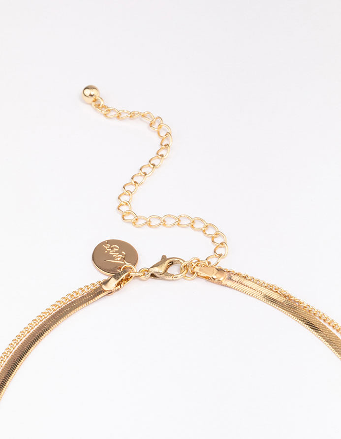 Curate your own signature look with this gorgeous, gold plated necklace. This layered necklace features a thick snake and fine gold chain, adorned with an emerald baguette-cut crystal. Perfect for adding interest to your neckline!