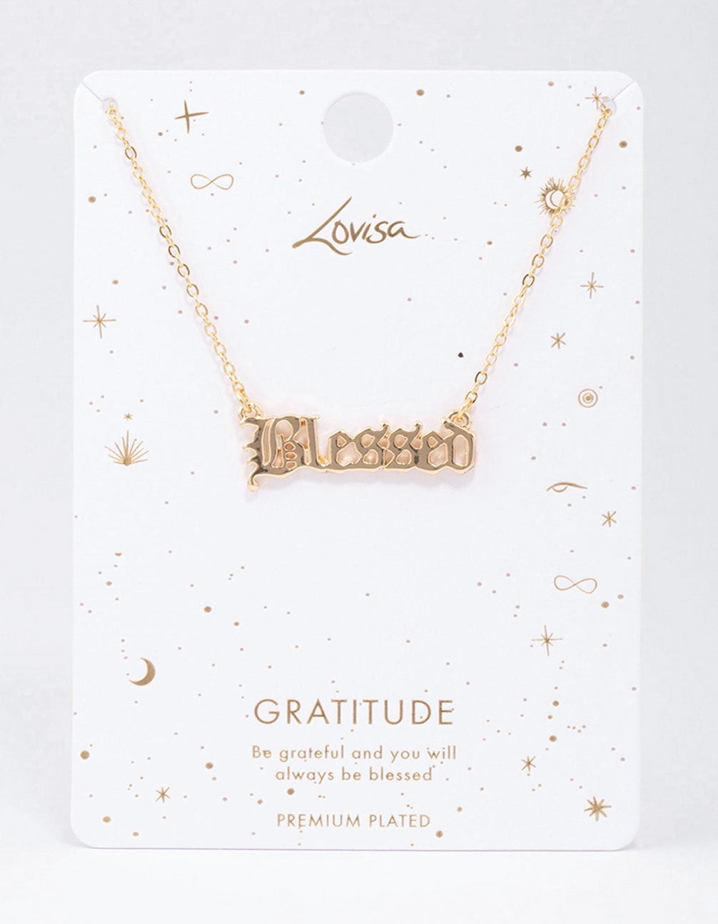 Gold Plated Blessed Script Pendant Necklace Gold Plated Blessed Script Pendant Necklace Gold Plated Blessed Script Pendant Necklace