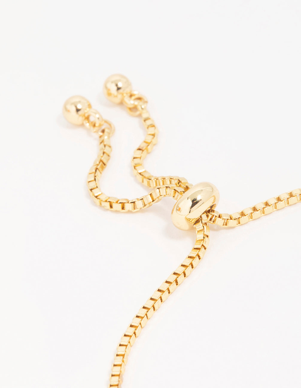 Gold Plated Brass Cubic Zirconia Heart & Bow Charm Toggle Bracelet