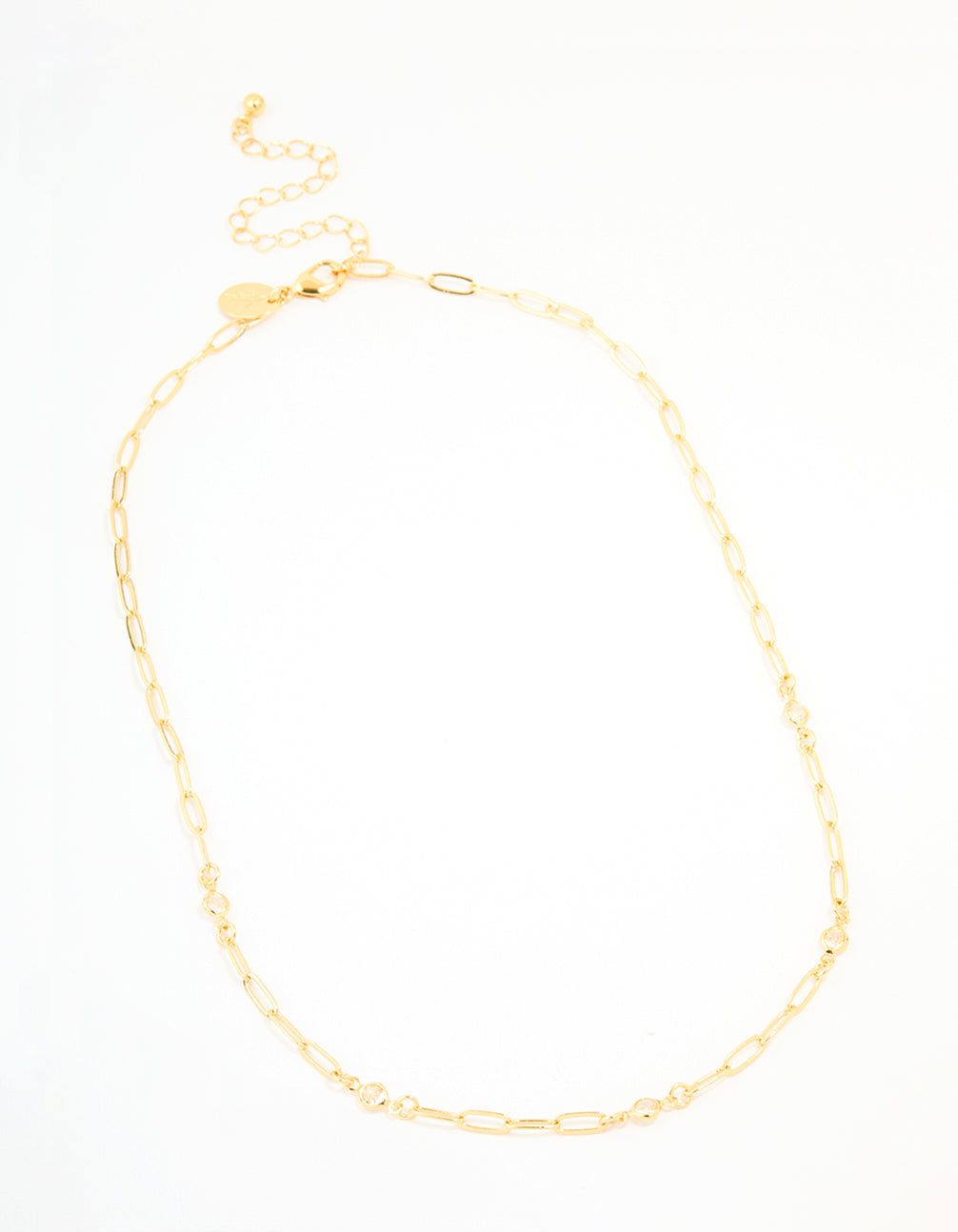 Gold Plated Brass Cubic Zirconia Open Link Chain Necklace