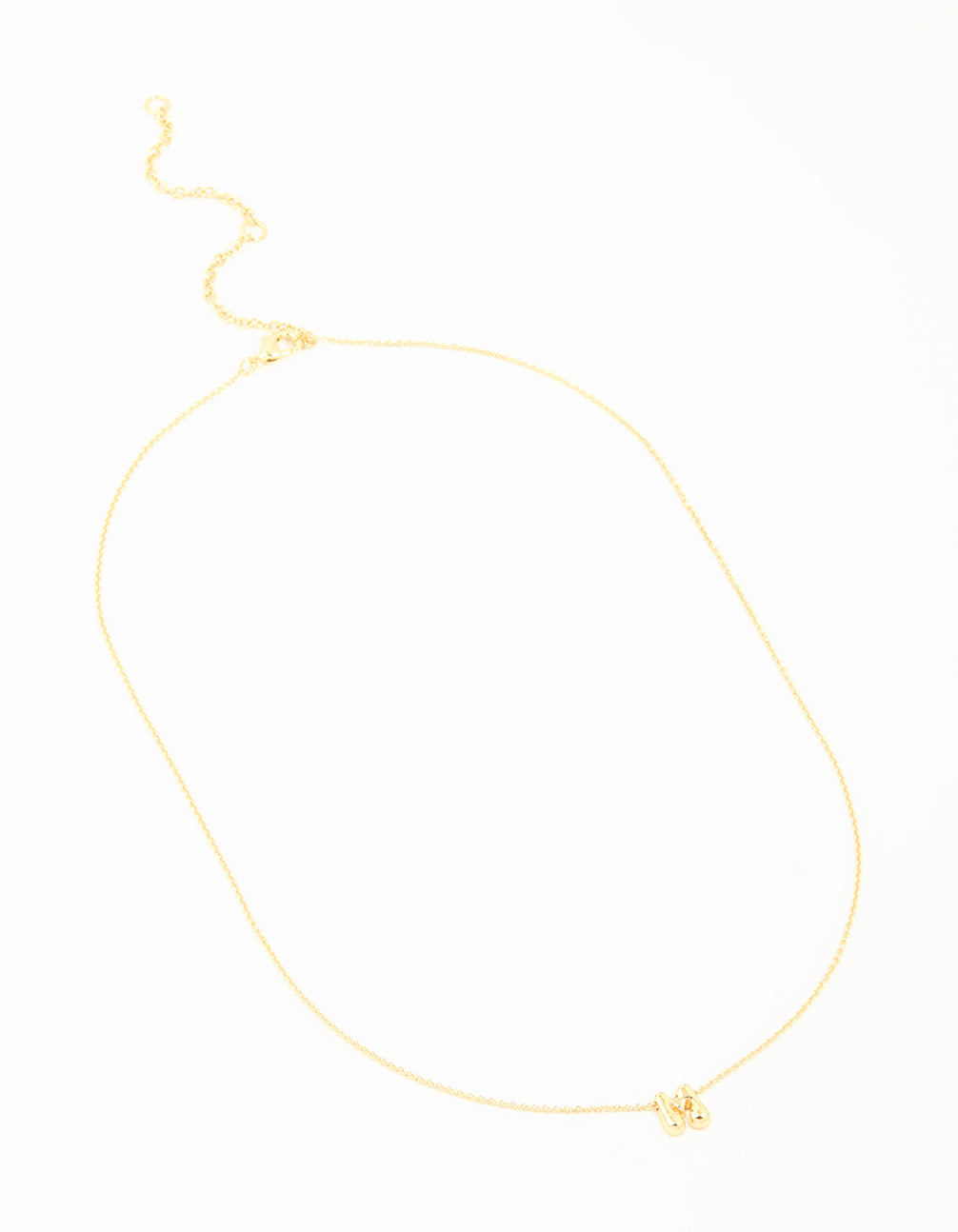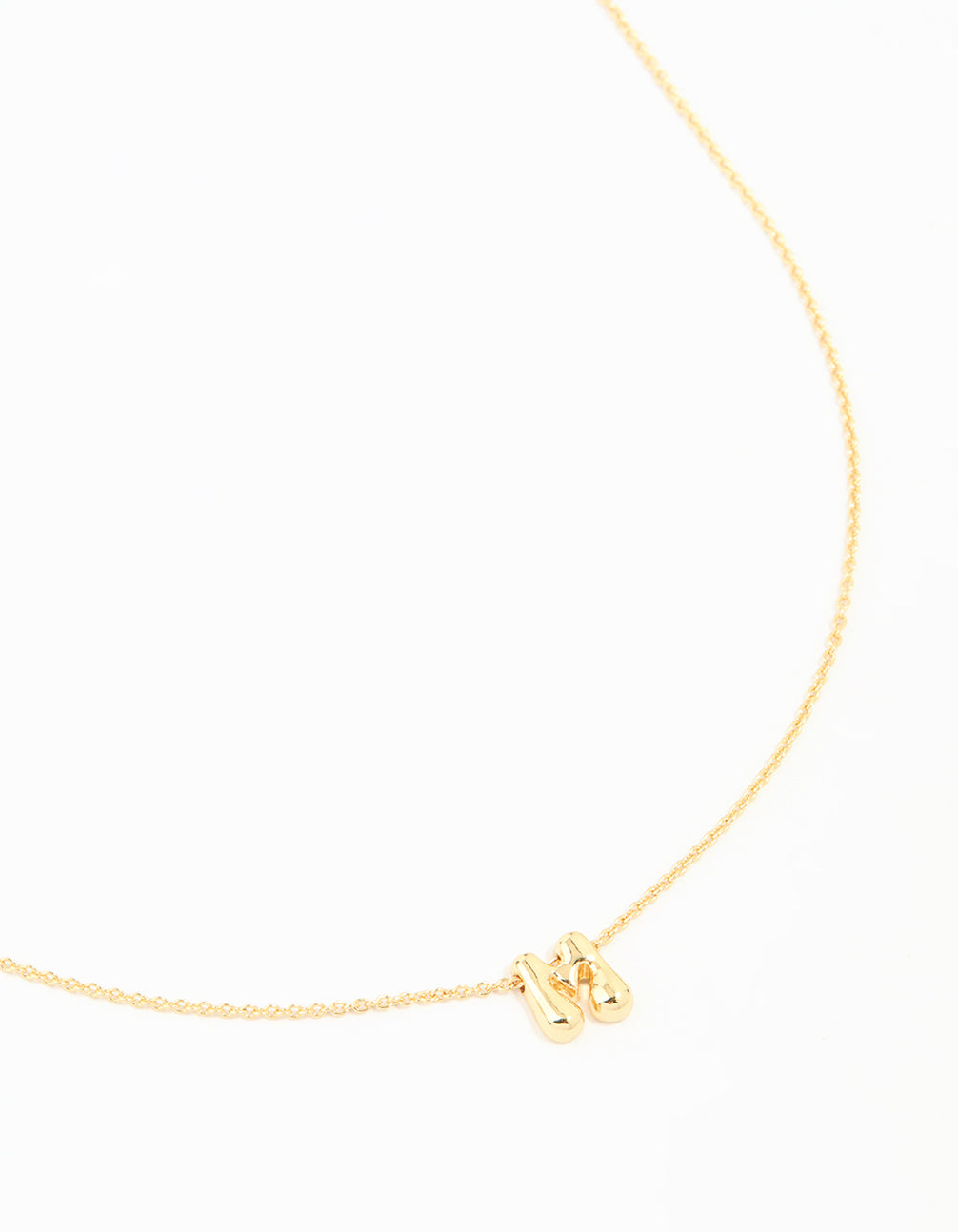Gold Plated Brass Mini Bubble Letter M Pendant Necklace