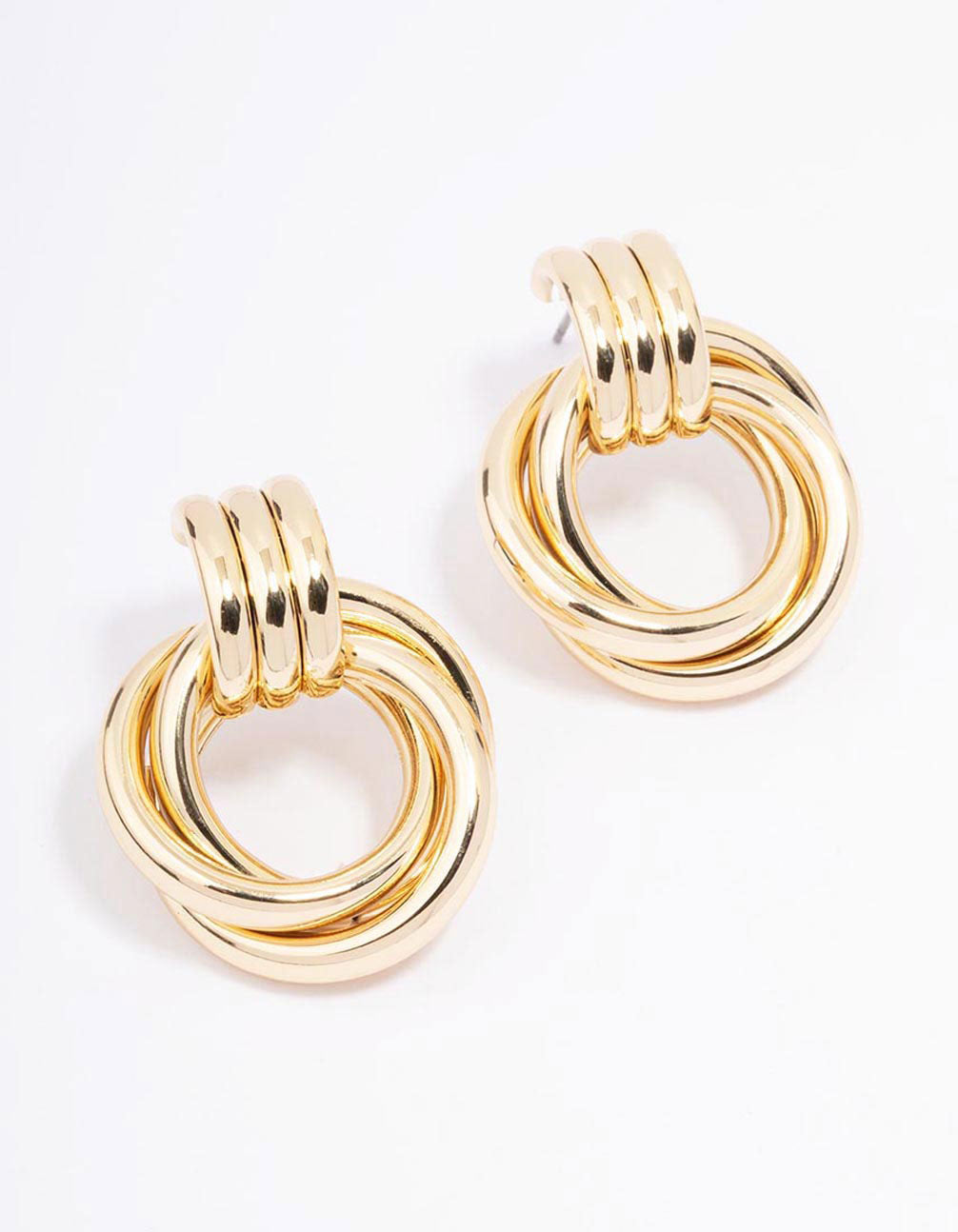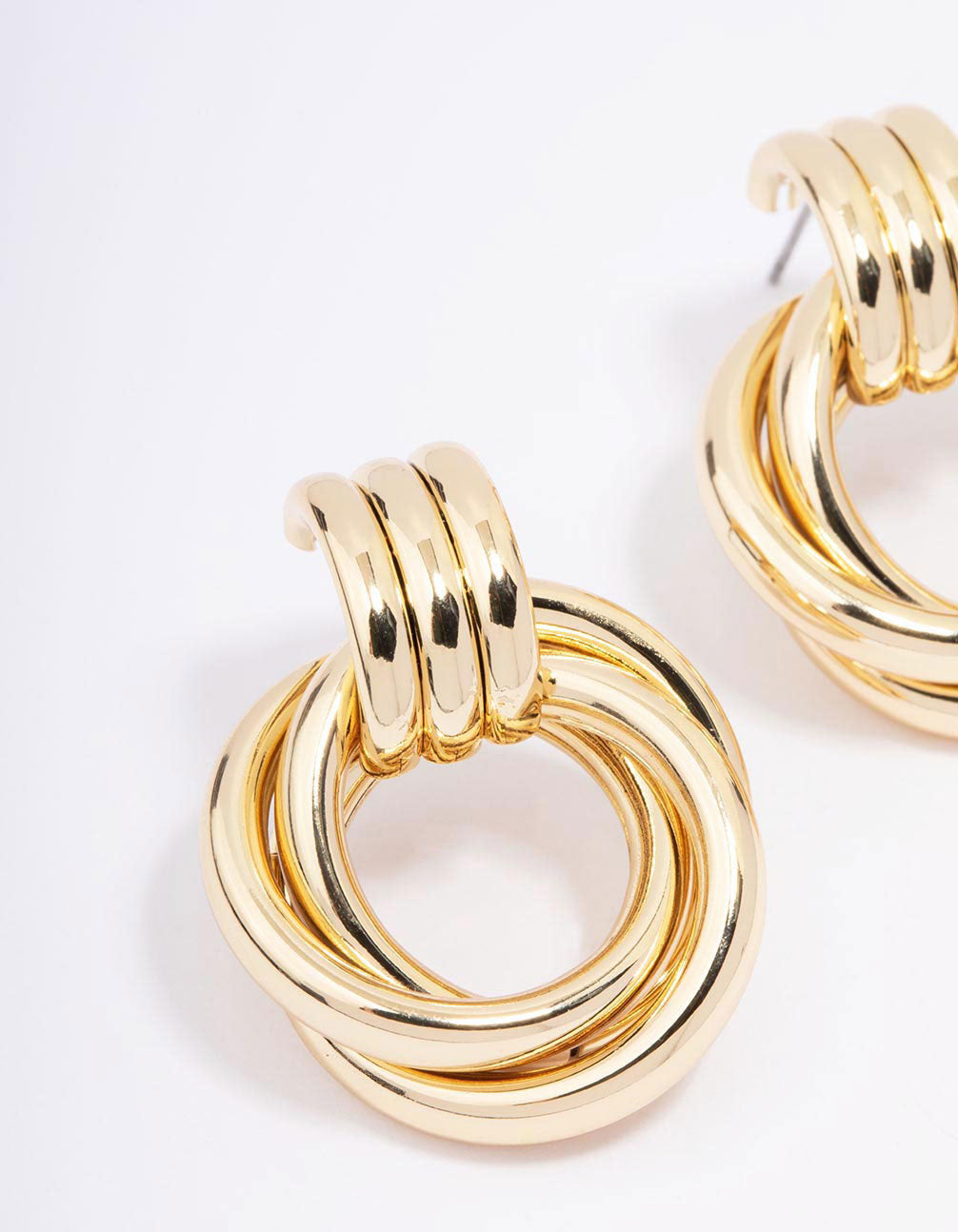 For a modern addition to your stack, style these gold plated stud earrings. These unique studs feature a doorknocker silhouette, perfect for elevating your everyday outfits.