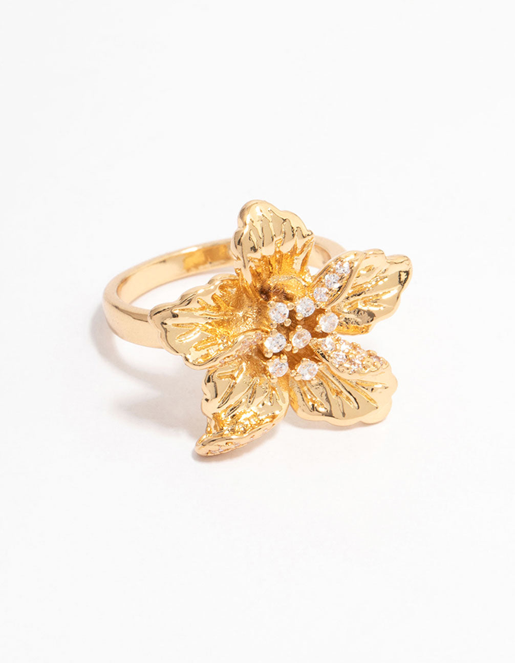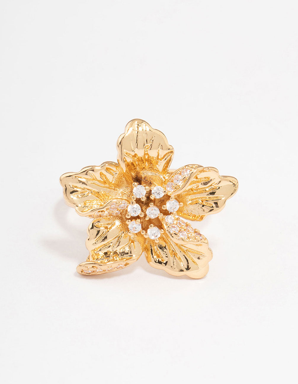 Gold Plated Cubic Zirconia Bling Flower Ring
