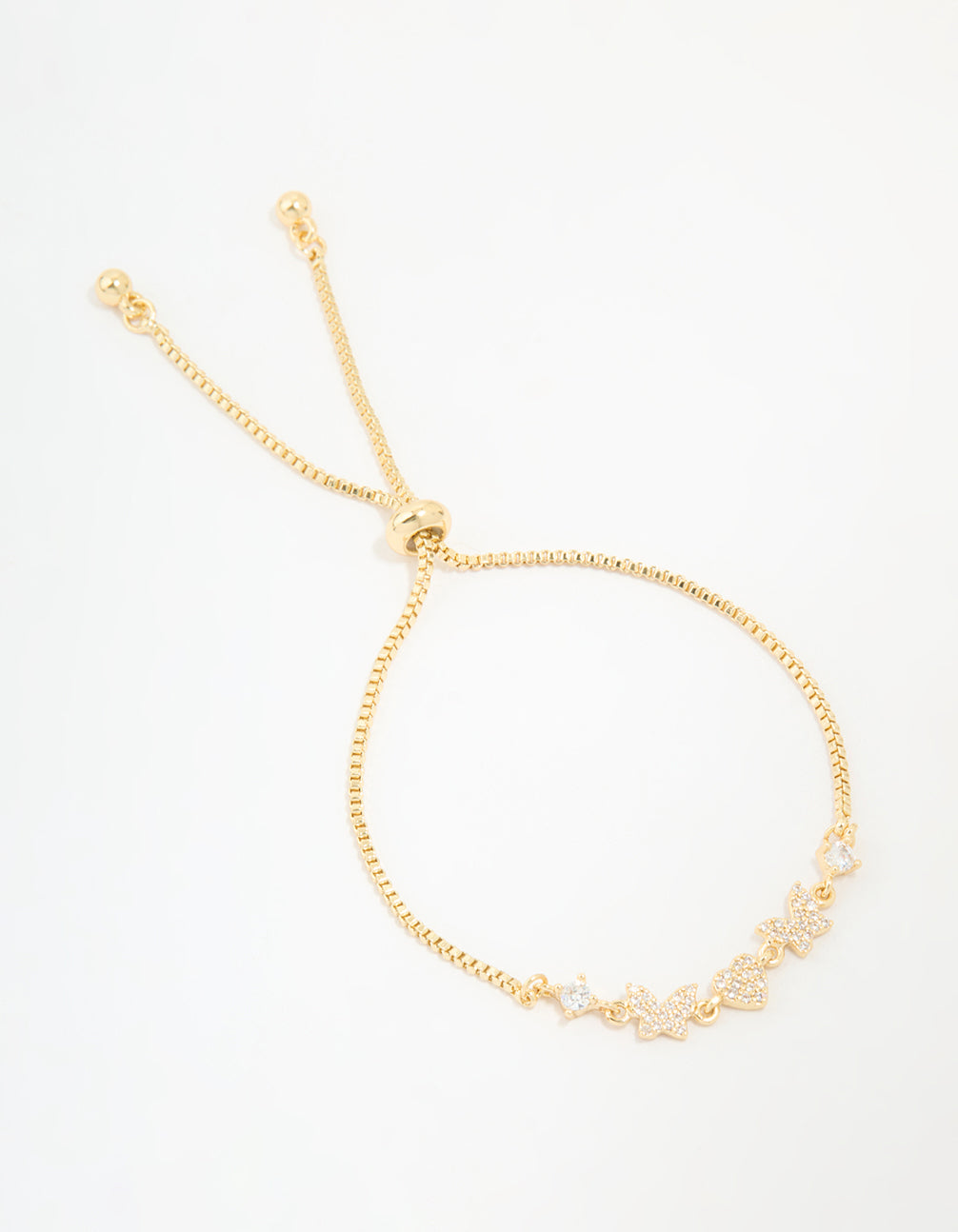 Gold Plated Cubic Zirconia Butterfly & Heart Toggle Bracelet