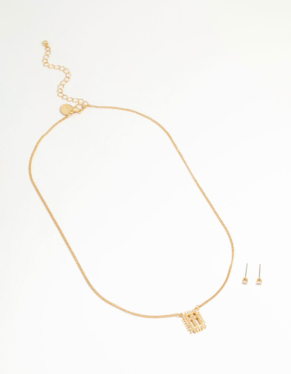 Gold Plated Cubic Zirconia Cross Necklace & Stud Earrings Set
