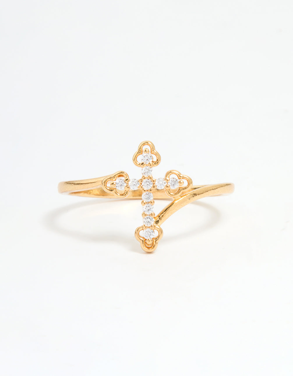 Add a little sparkle to your everyday look with this Gold Plated Cubic Zirconia Cross Ring. This ring features a delicate cross design accented with shimmering cubic zirconia crystals, all set on a sleek gold-plated band. Perfectly versatile, it's a stylish accessory for everything from casual coffee dates to glam nights out. Pair it with other gold jewellery for a coordinated look, or let it shine solo as a statement piece. Whether you're stacking it with other rings or wearing it alone, this cross ring is a must-have for anyone who loves modern, meaningful jewellery with a touch of elegance. A gorgeous choice for yourself or a thoughtful gift for someone special!